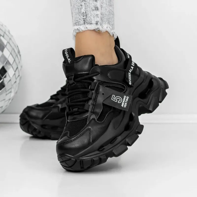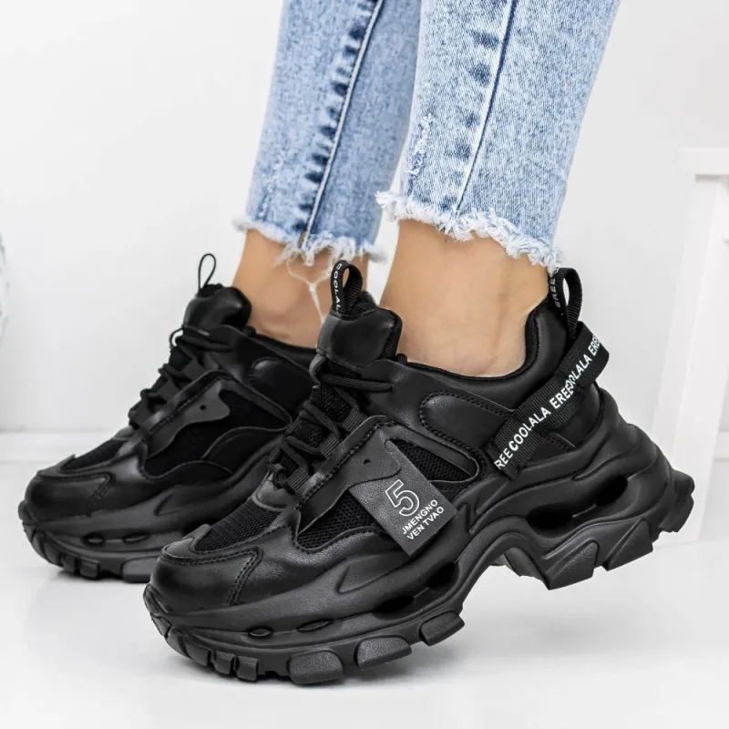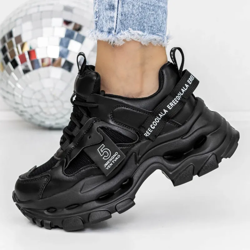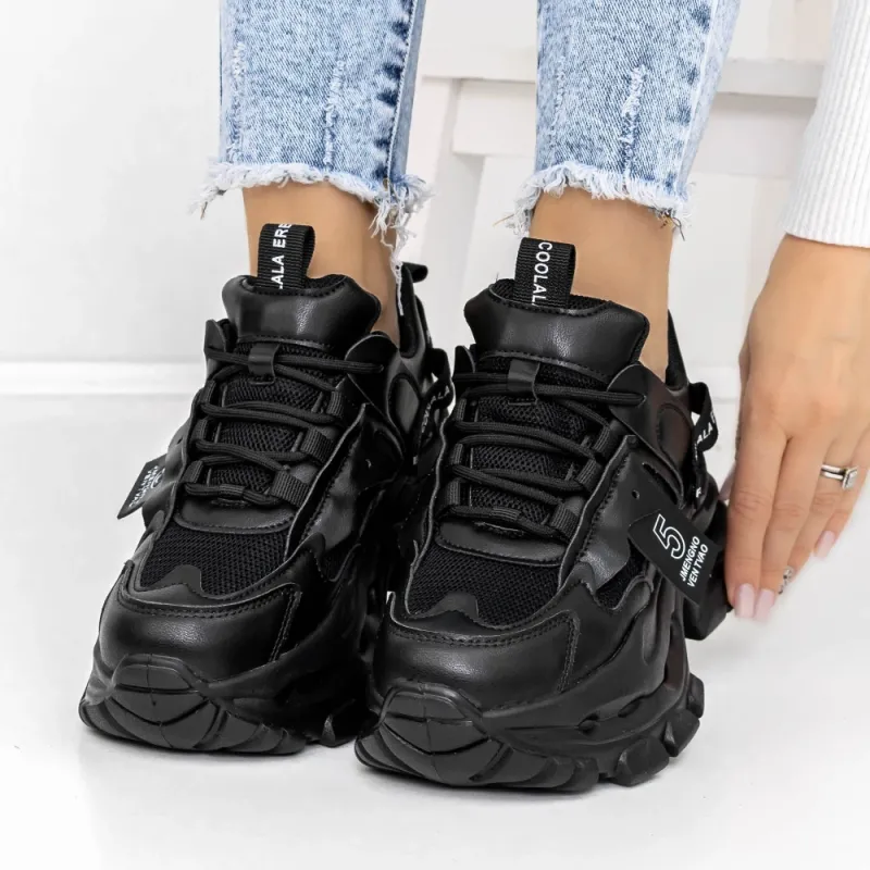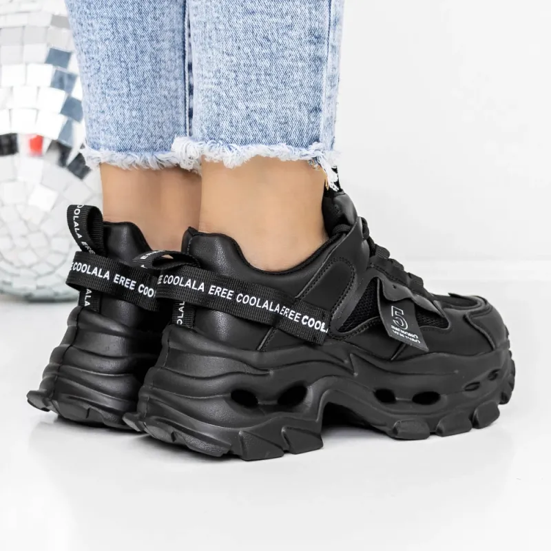 Pantofi Sport Dama cu Platforma 3WL107 Negru | Reina