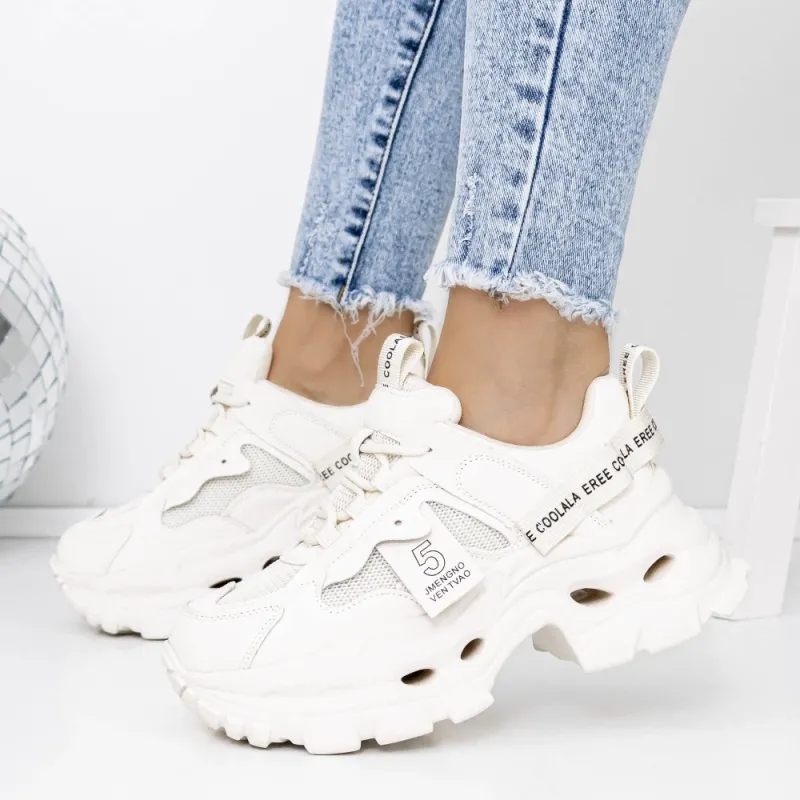 Pantofi Sport Dama cu Platforma 3WL107 Bej » Reina.Ro