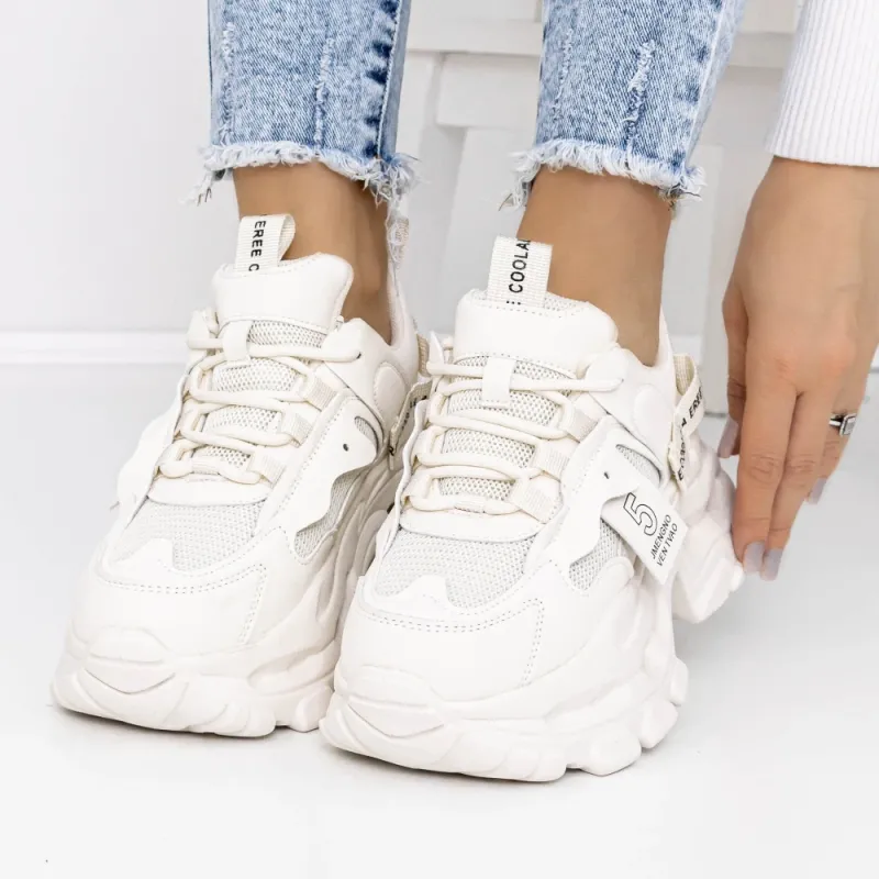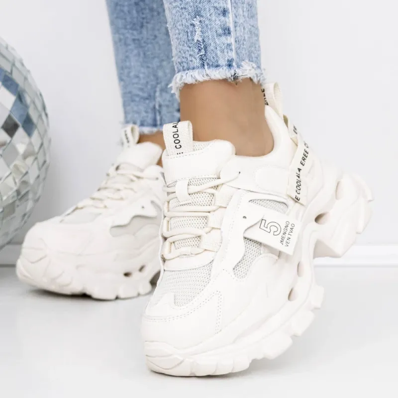 Pantofi Sport Dama cu Platforma 3WL107 Bej | Reina