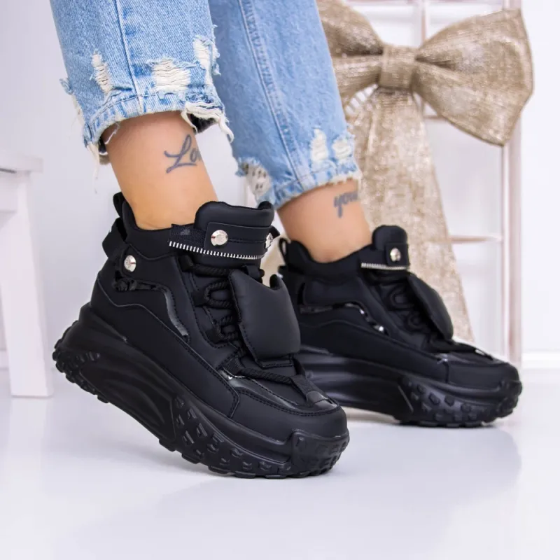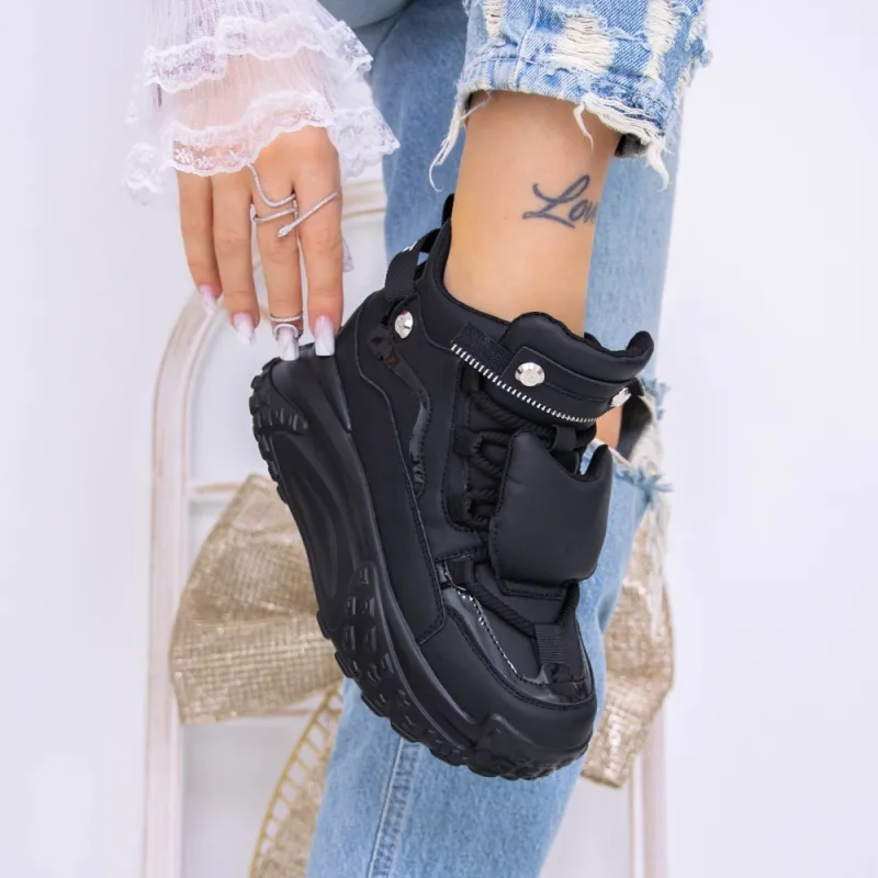 Pantofi Sport Dama cu Platforma 3YJA5 Negru | Reina