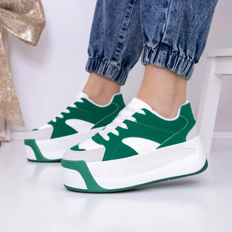 Pantofi Sport Dama cu Platforma 3XJ113 Verde | Reina