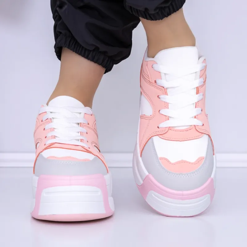 Pantofi Sport Dama cu Platforma 3XJ113 Roz | Reina