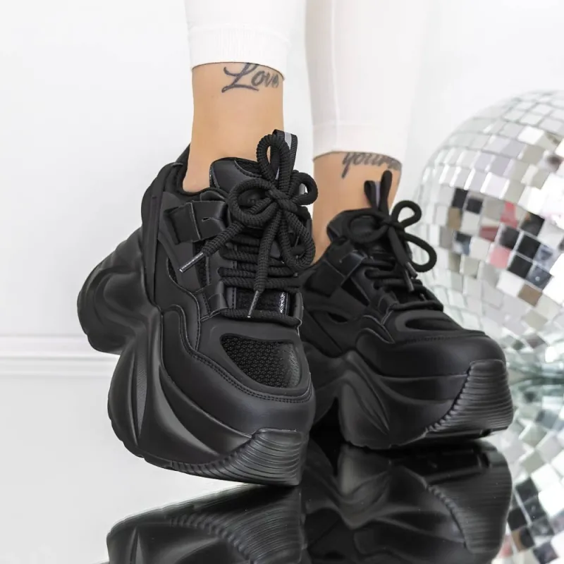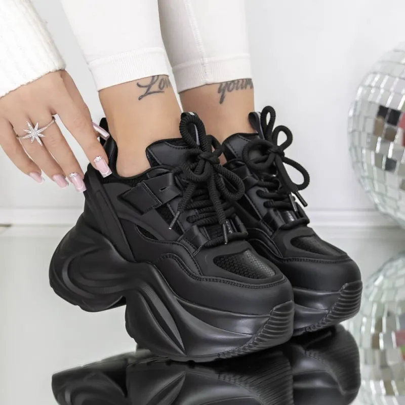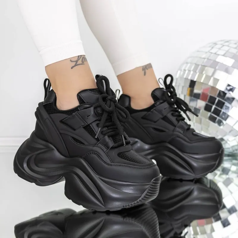 Pantofi Sport Dama cu Platforma 3SJN26 Negru | Reina