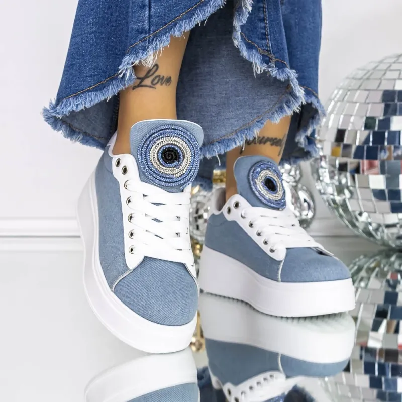 Pantofi Sport Dama cu Platforma H203 Albastru | Reina