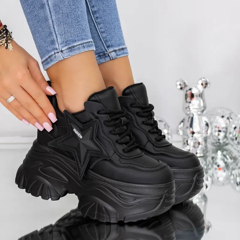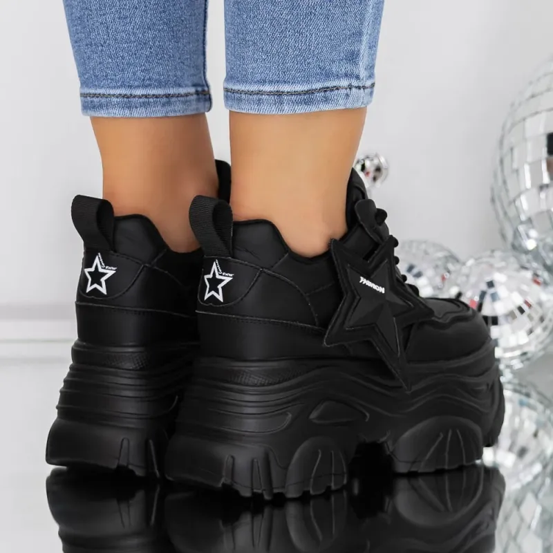 Pantofi Sport Dama cu Platforma 3SJN36 Negru | Reina