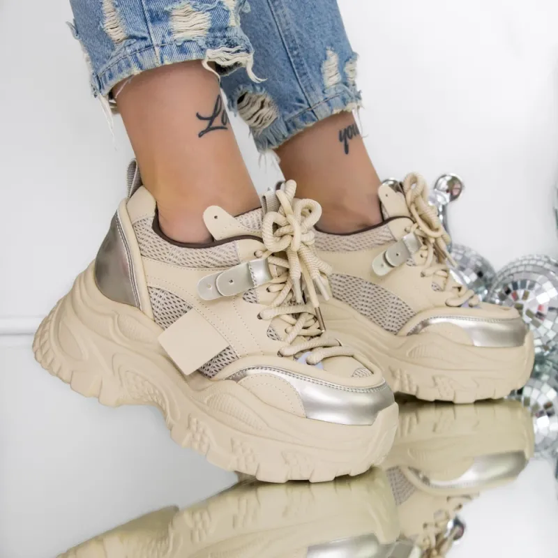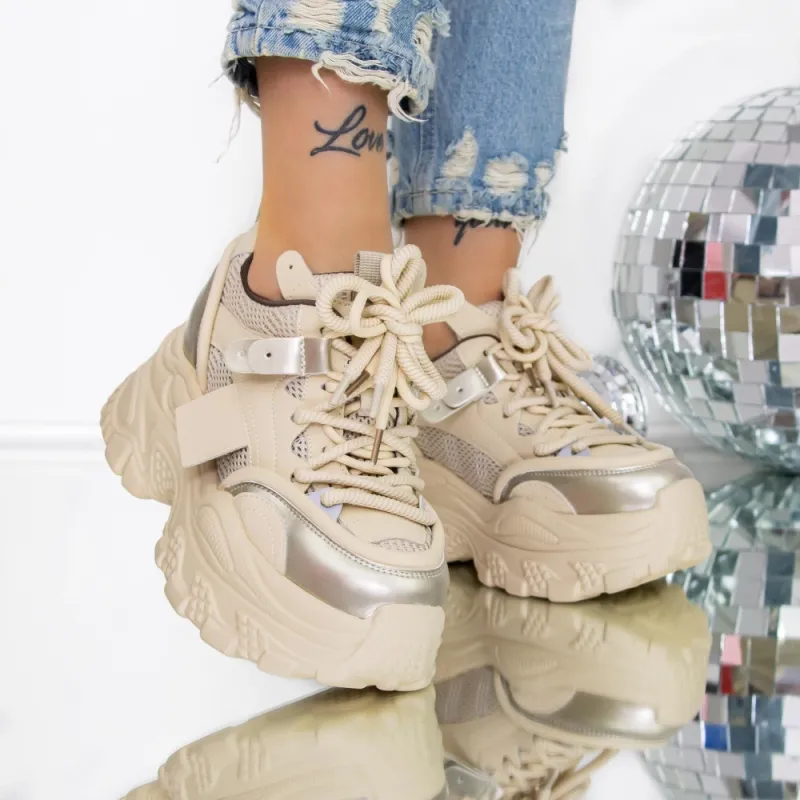 Pantofi Sport dama cu Platforma 3SJN55 Bej | Reina