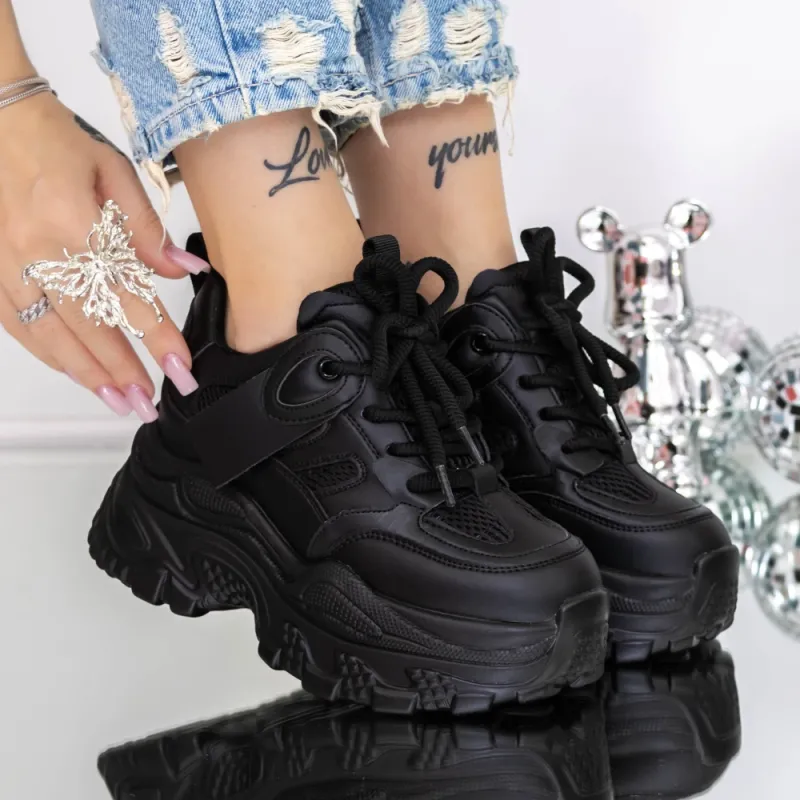 Pantofi Sport dama cu Platforma 3SJN58 Negru | Reina