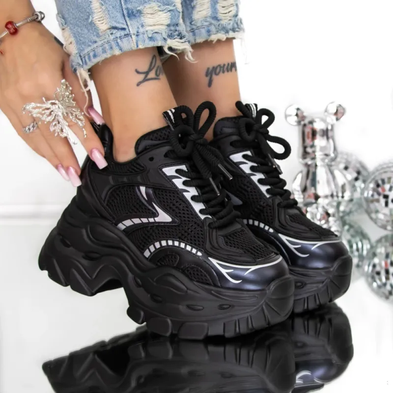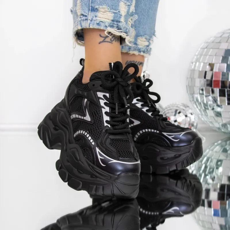 Pantofi Sport dama cu Platforma 3SJN60 Negru | Reina