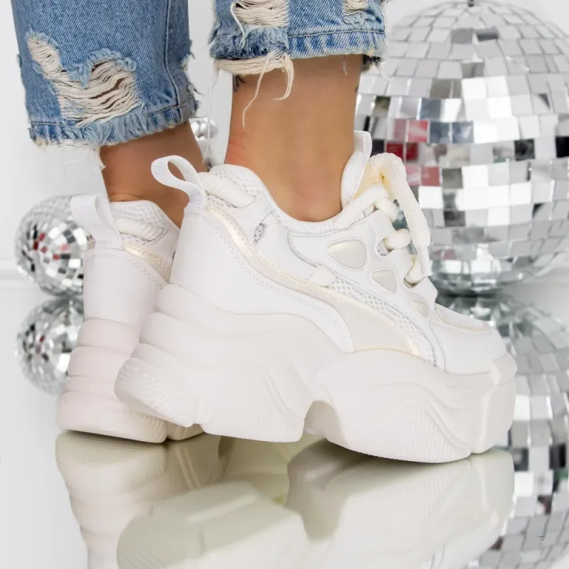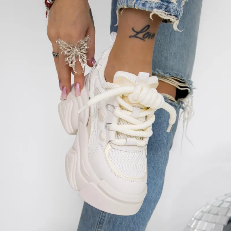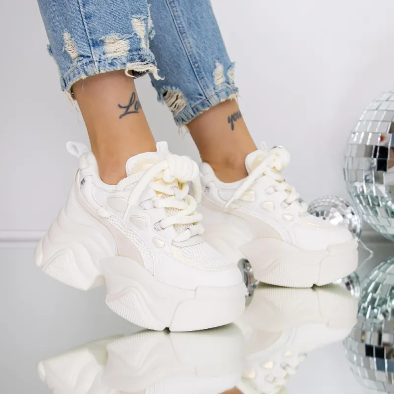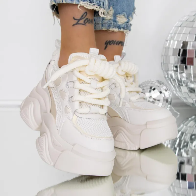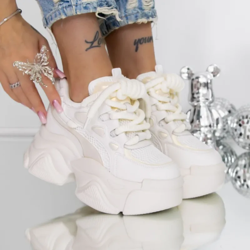 Pantofi Sport dama cu Platforma 3SJN61 Bej-Alb | Reina