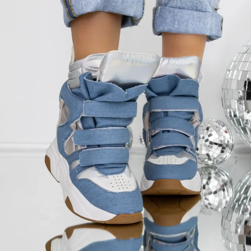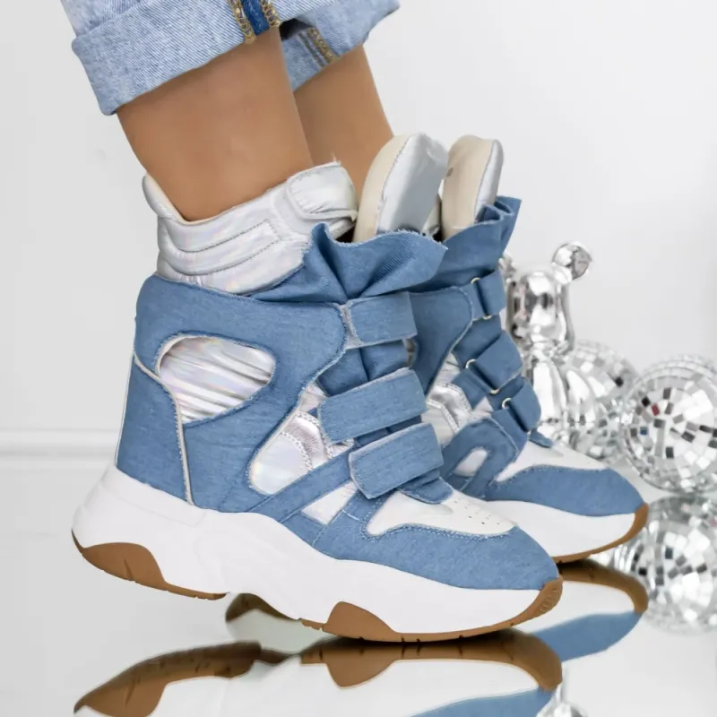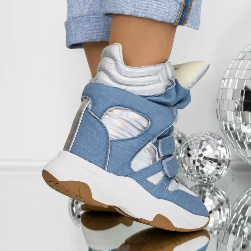 Pantofi Sport dama cu Platforma 3JF29 Argintiu-Albastru | Reina