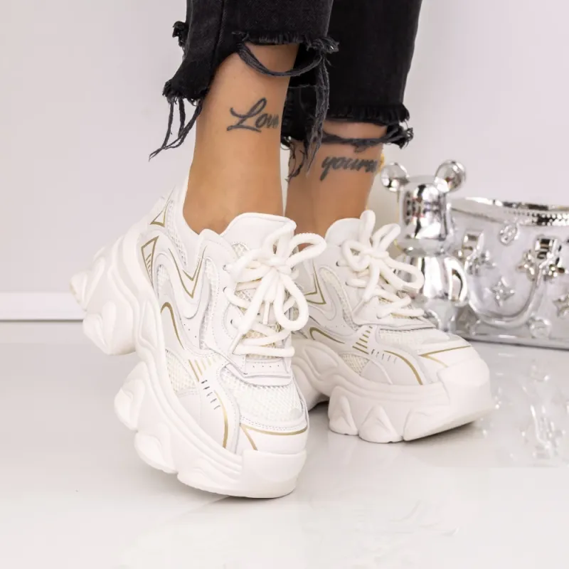 Pantofi Sport Dama cu Platforma 760-1 Alb | Mei