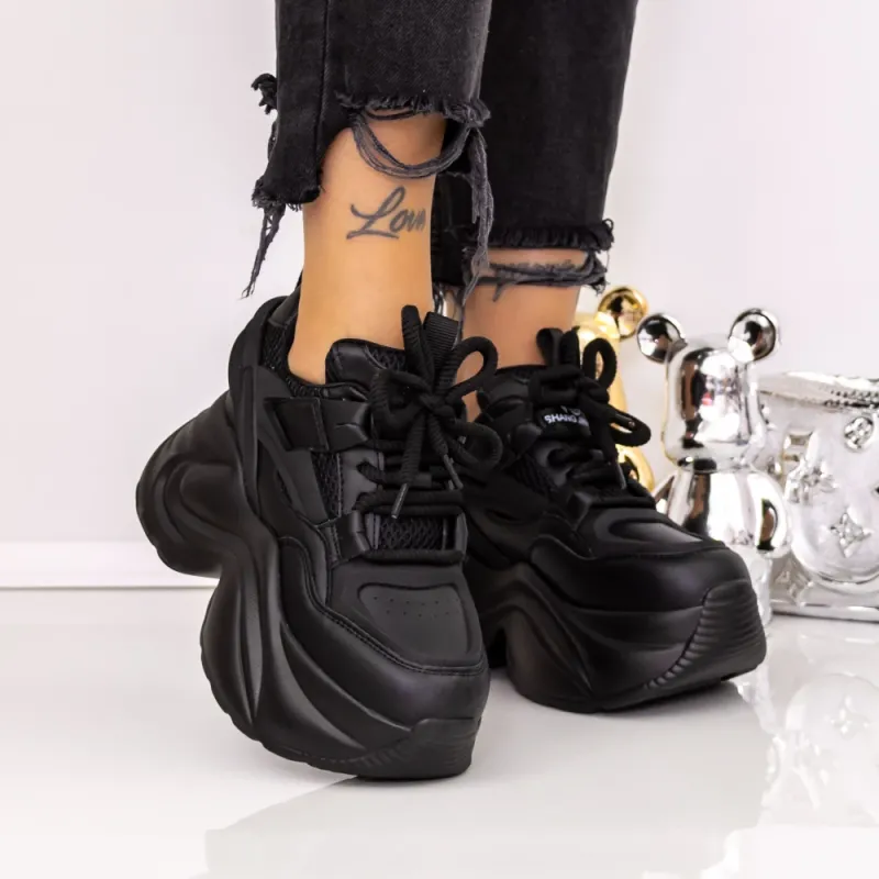 Pantofi Sport Dama cu Platforma 8889-66 Negru | Mei