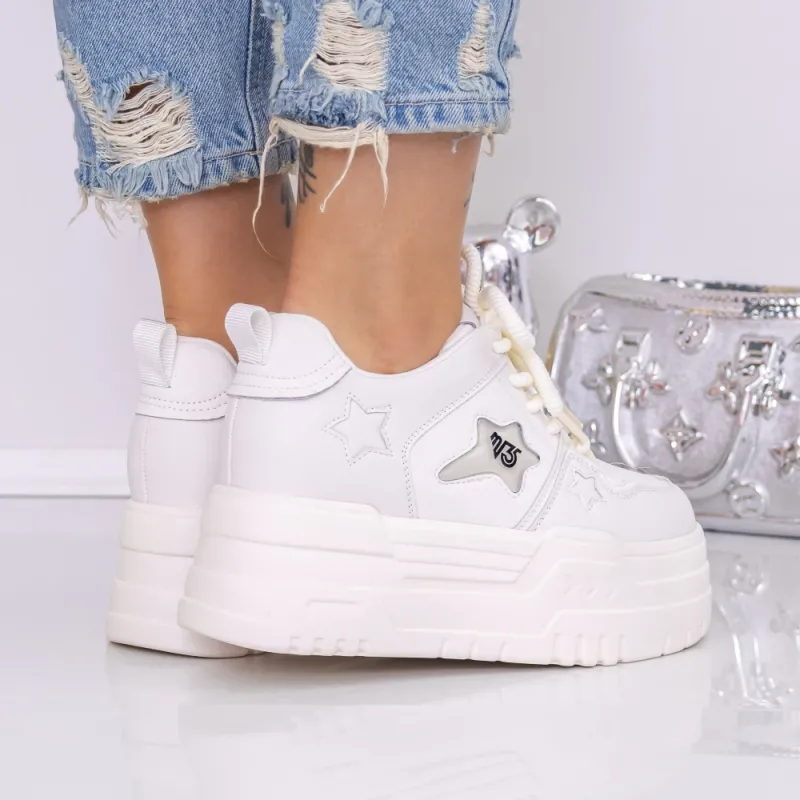 Pantofi Sport Dama cu Platforma 7788-16 Bej-Alb | Mei