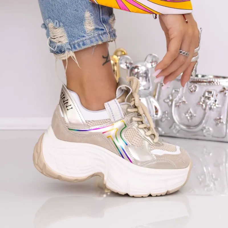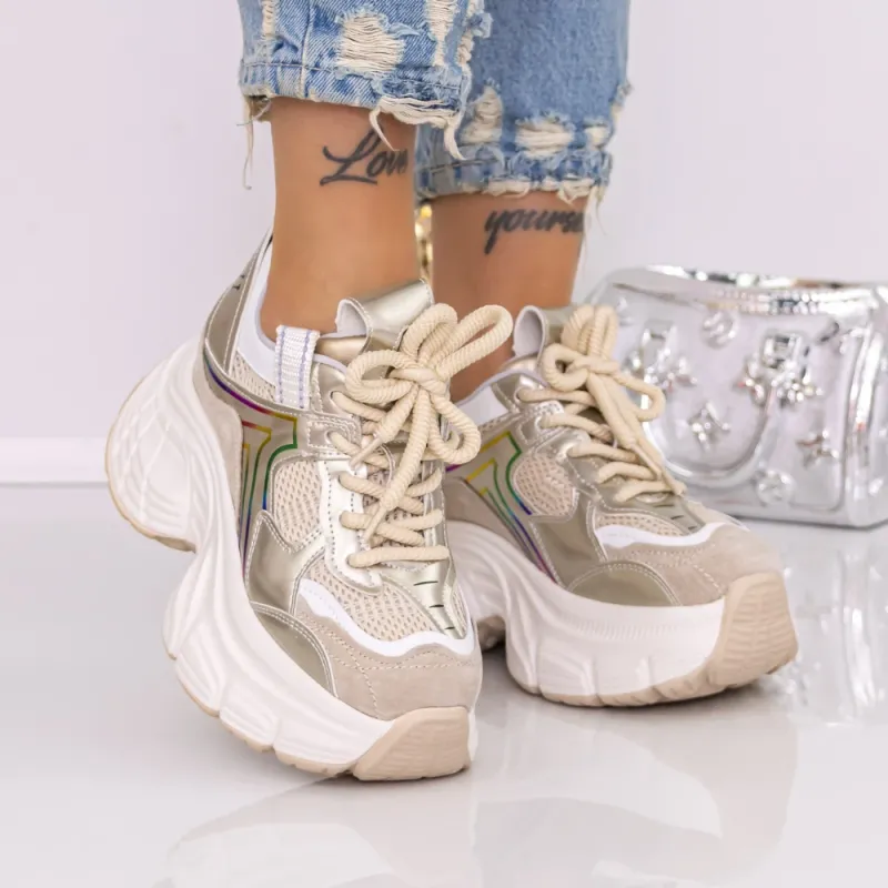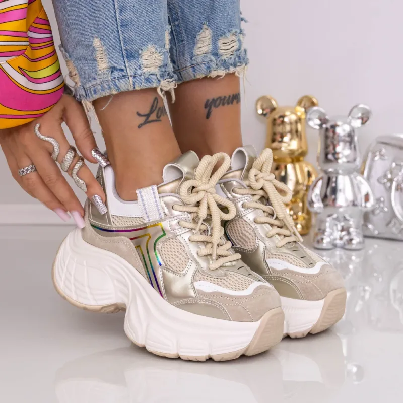 Pantofi Sport Dama cu Platforma 9157-2 Bej-Auriu | Mei