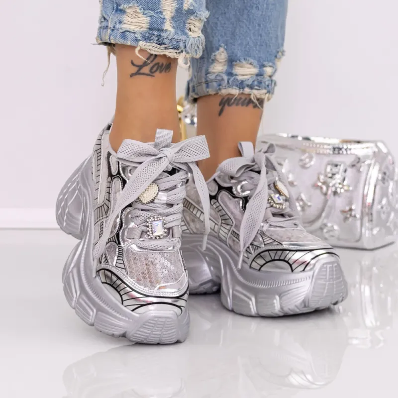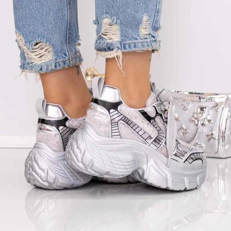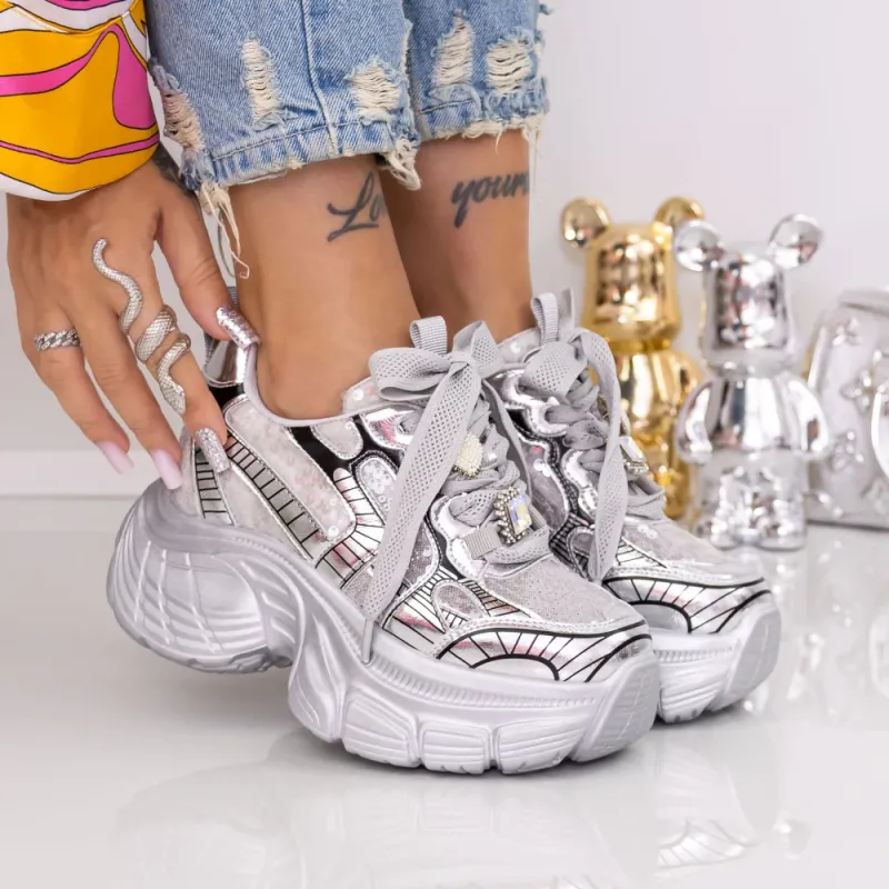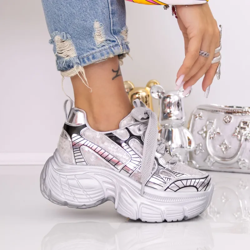 Pantofi Sport Dama cu Platforma 9157-16 Argintiu | Mei