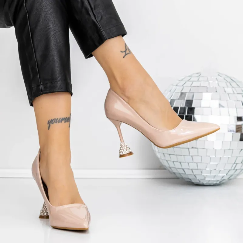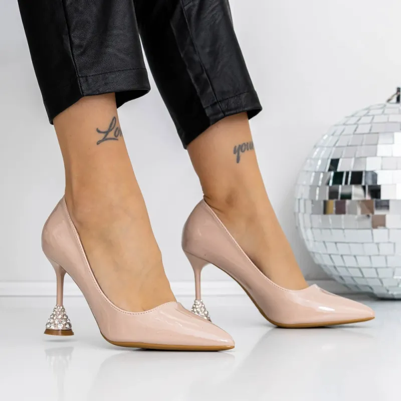 Pantofi cu Toc subtire 3YXD92 Bej » Reina.Ro