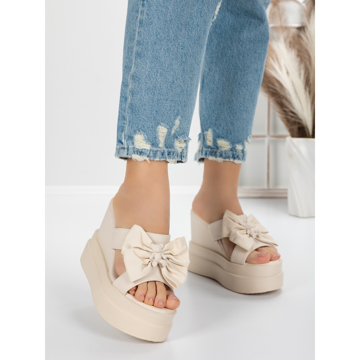 Papuci Dama cu Platforma 5WL36 Bej | Mei