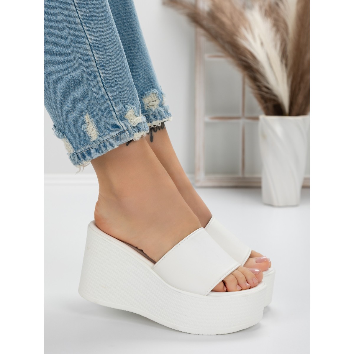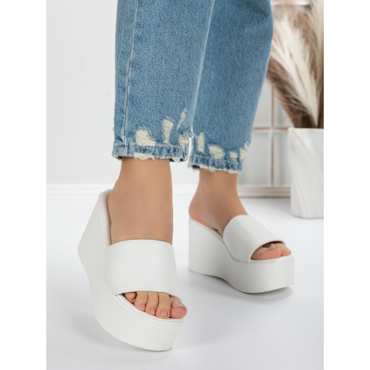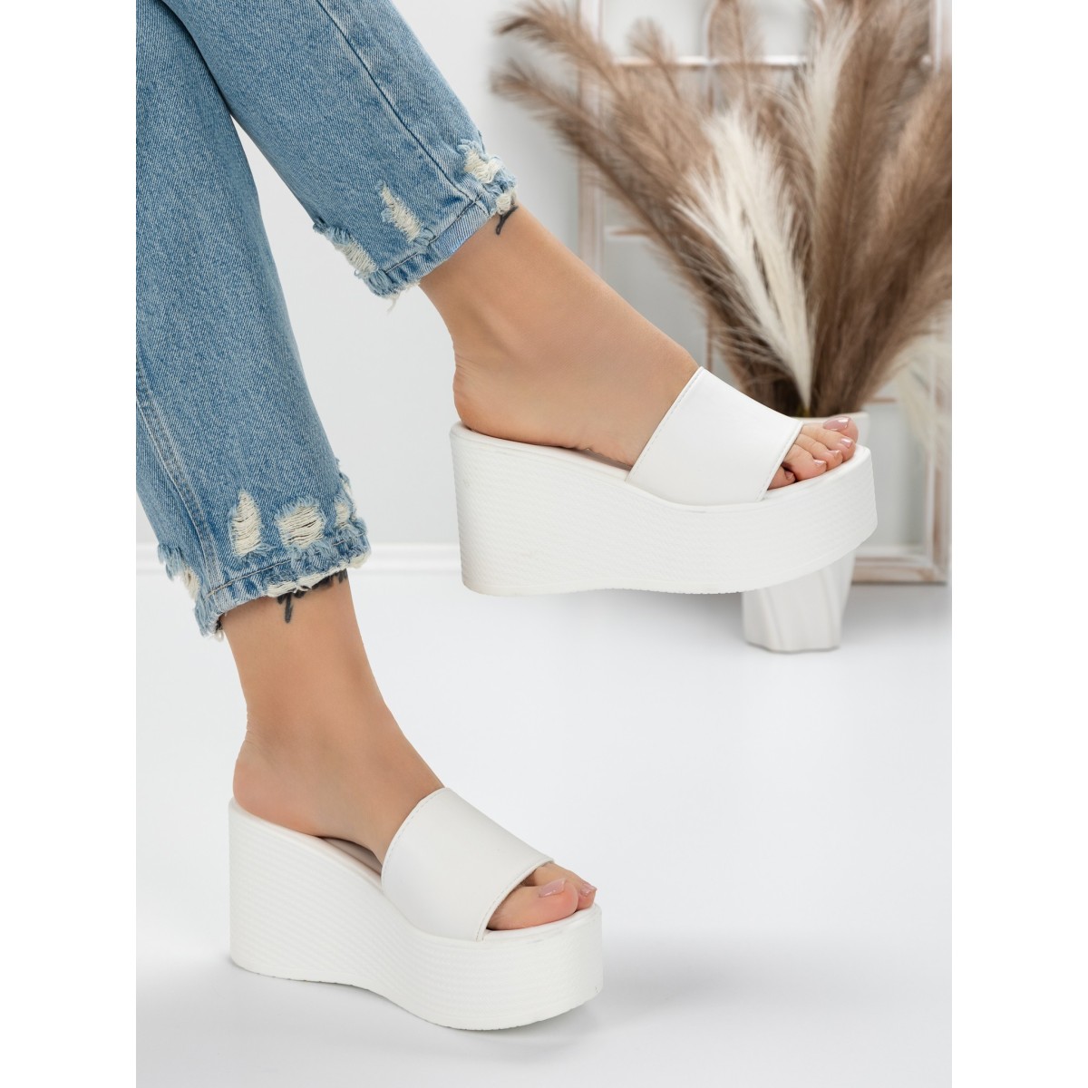 Papuci Dama cu Platforma 5WL6 Alb | Mei