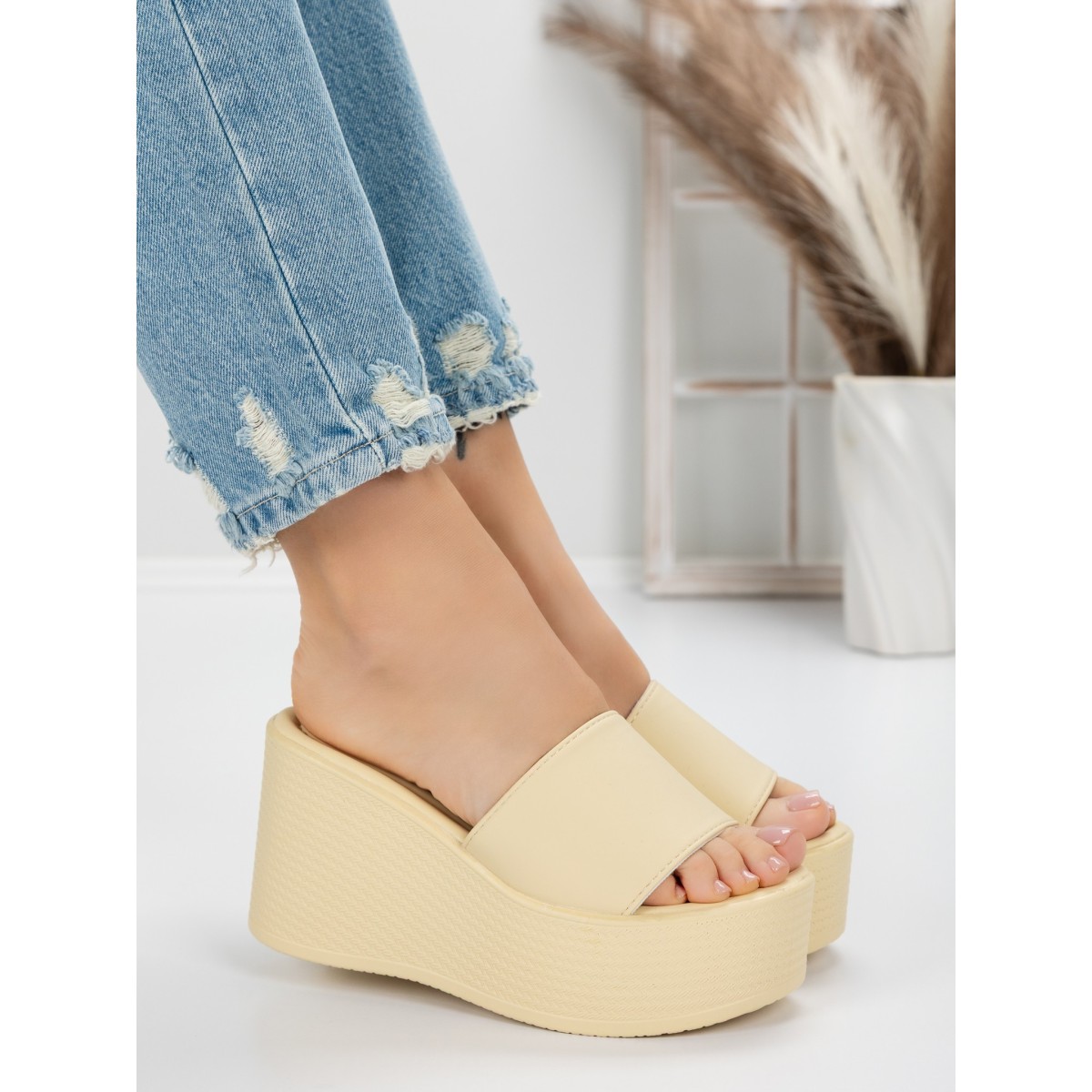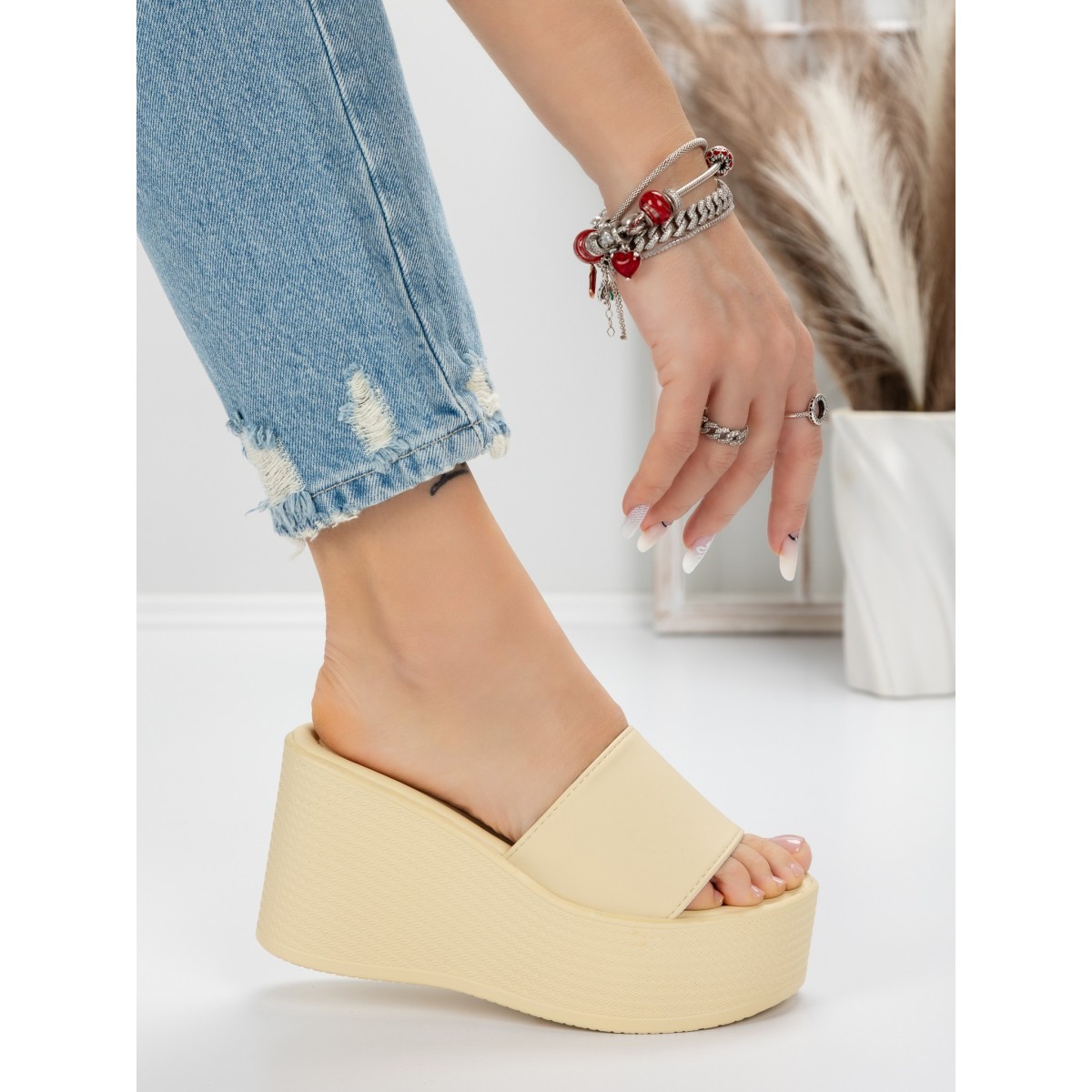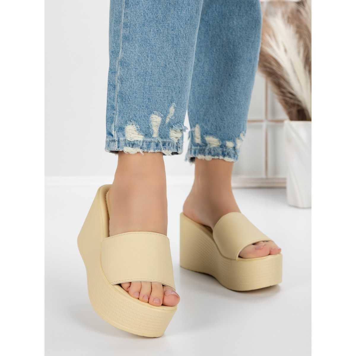 Papuci Dama cu Platforma 5WL6 Galbel Deschis | Mei