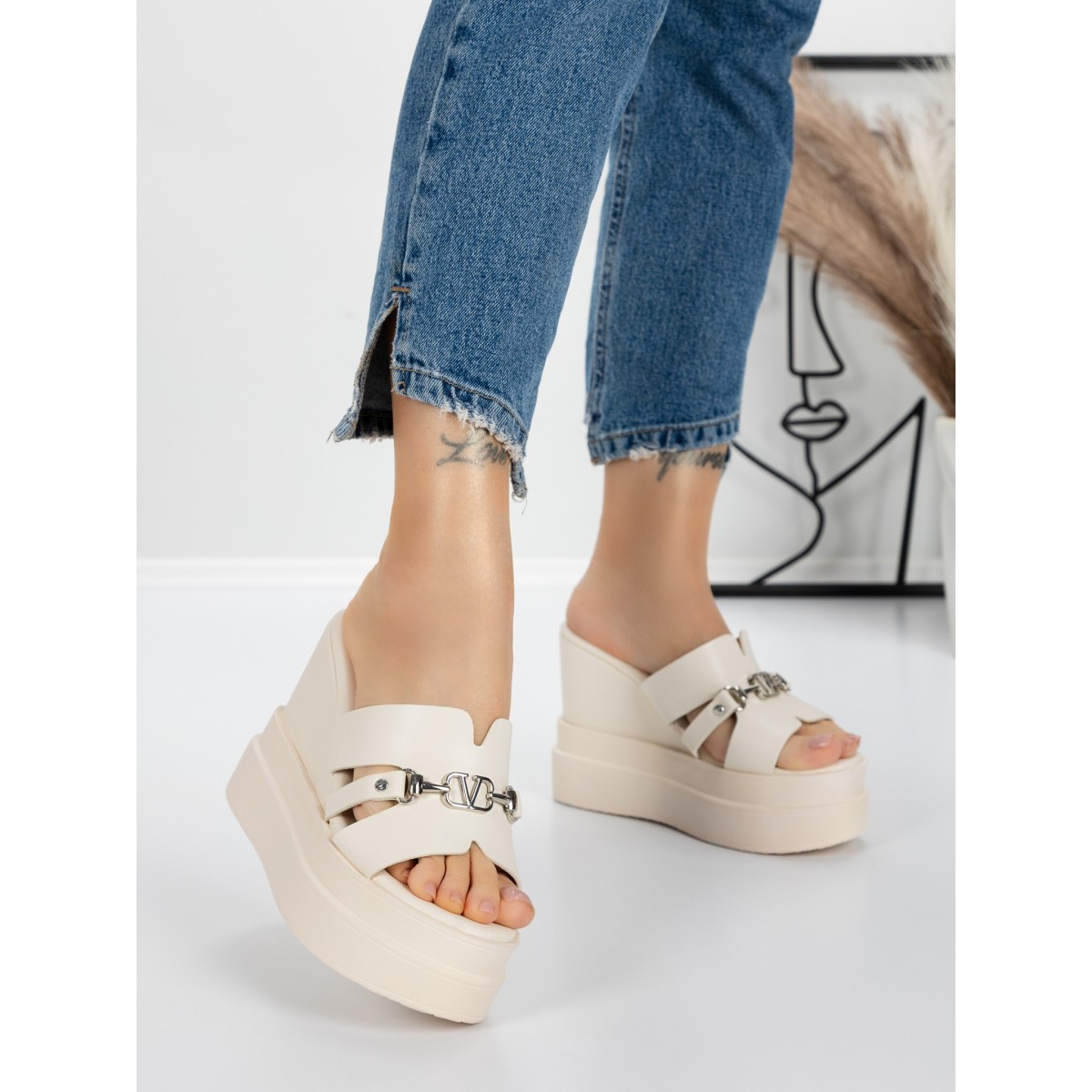 Papuci Dama cu Platforma 5WL60 Bej | Mei