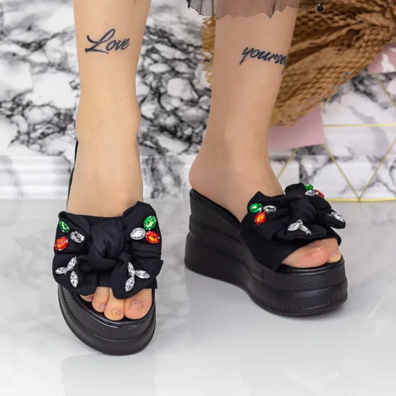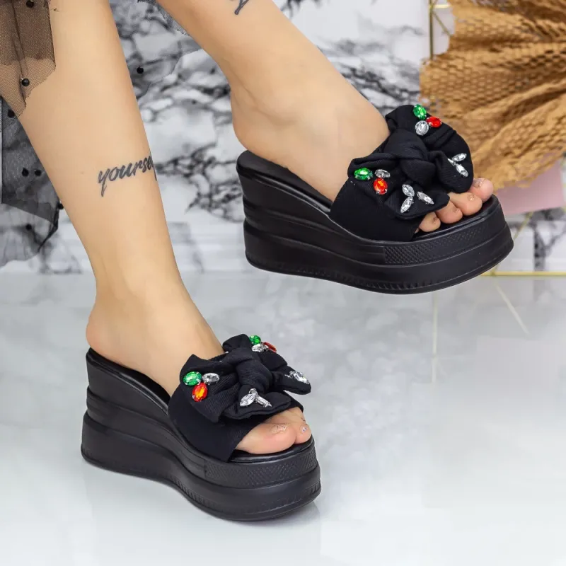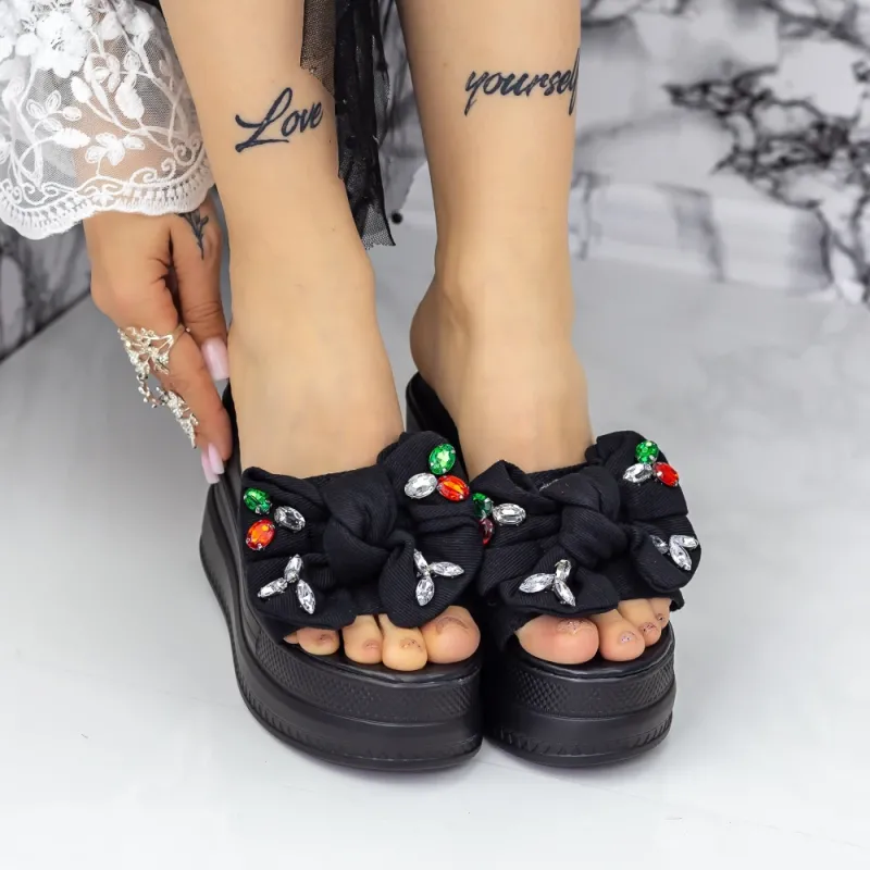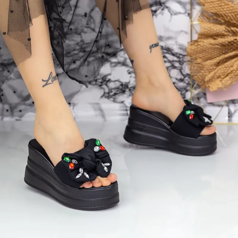 Papuci Dama cu Platforma 2XN9 Negru Mei