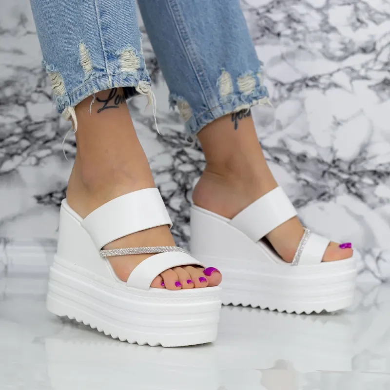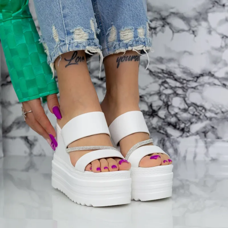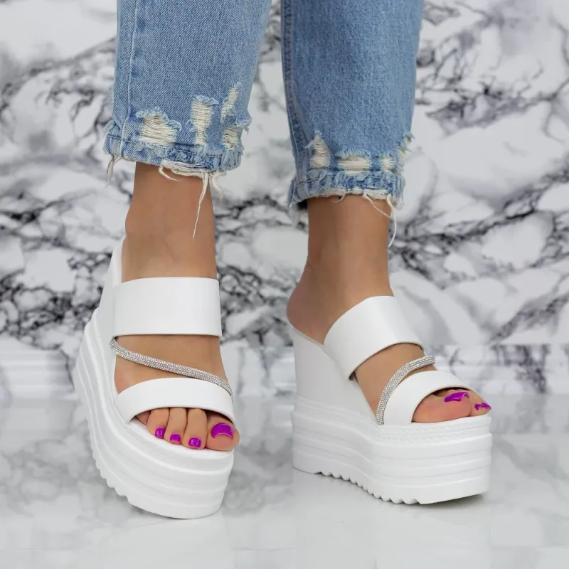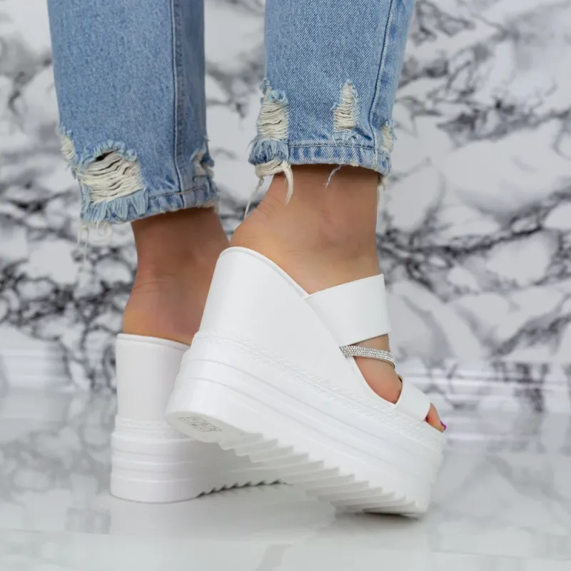 Papuci Dama cu Platforma 2WL116 Alb Mei