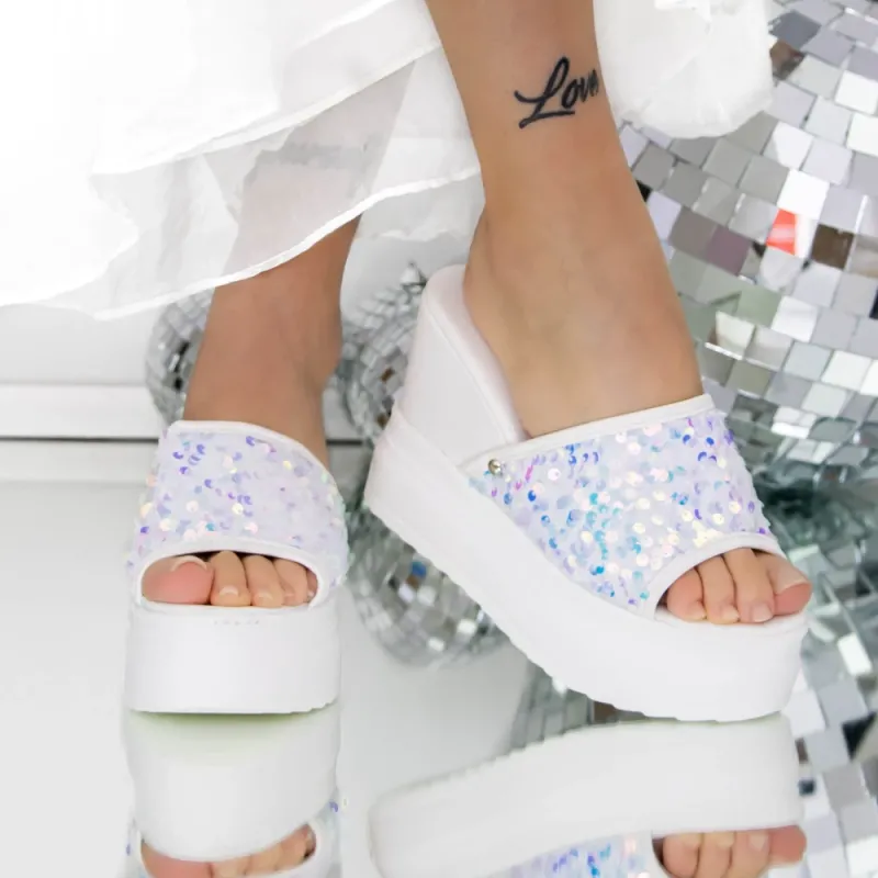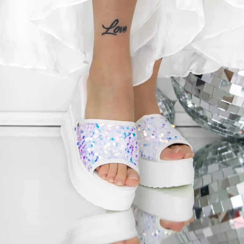 Papuci Dama cu Platforma 3AW316 Alb | Reina