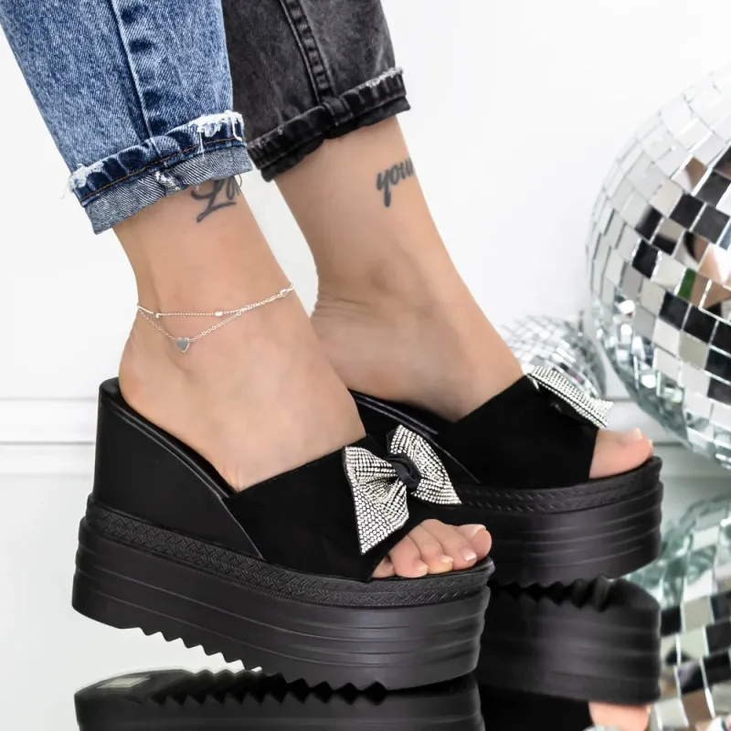 Papuci Dama cu Platforma 3AW313 Negru-Alb | Reina
