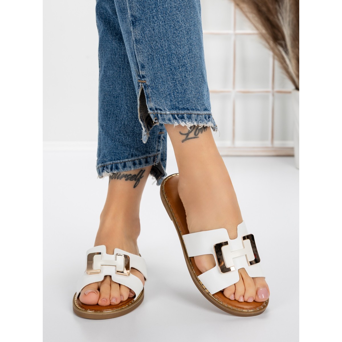 Papuci Dama cu Talpa Joasa 5PT2 Alb | Mei