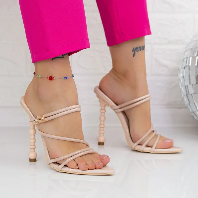 Papuci Dama cu Toc subtire VK141 Roz » Reina.Ro