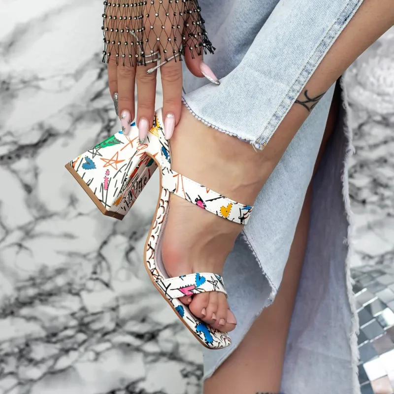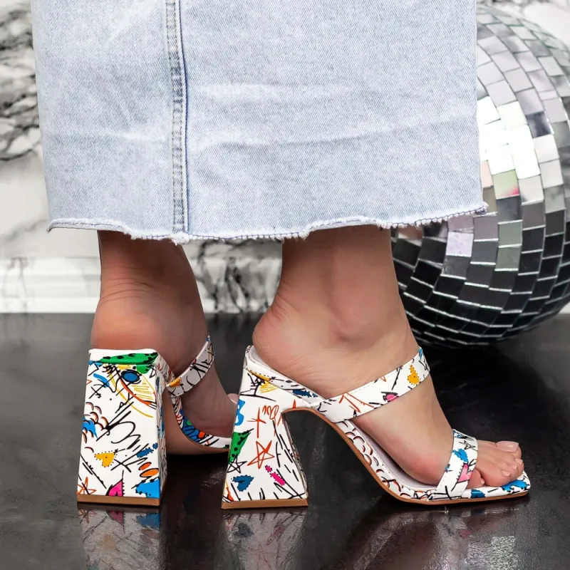 Papuci Dama cu Toc gros 2KV76 Alb Mei
