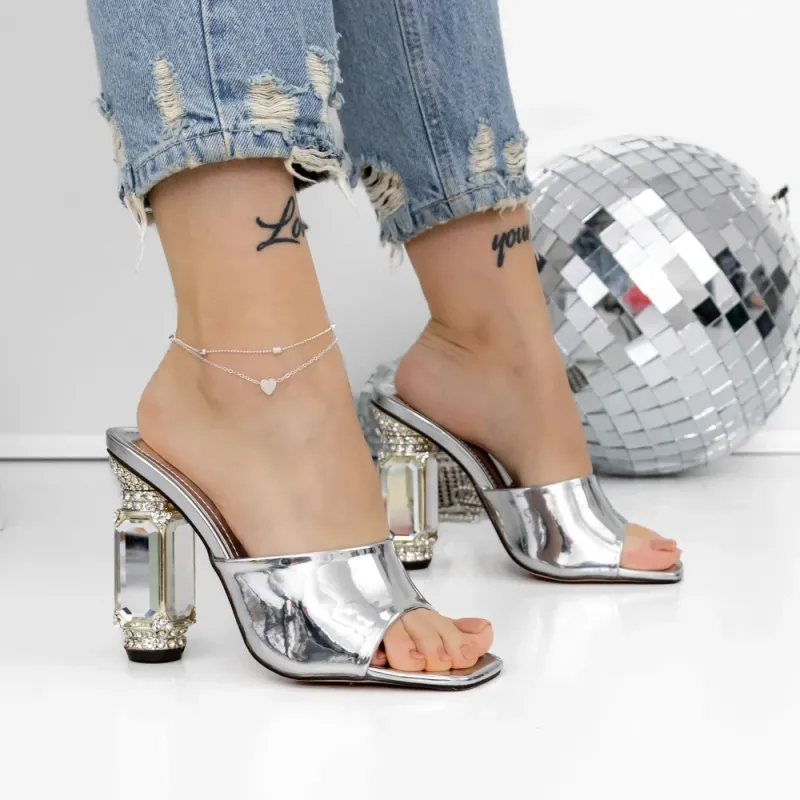 Papuci Dama cu Toc 3NE9 Argintiu | Reina