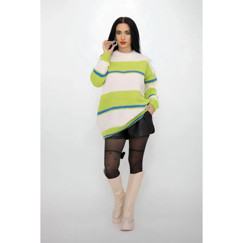 Pulover Dama OP4 Alb-Verde | Kikiriki