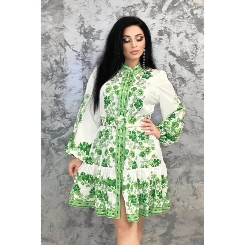 Rochie Dama VMC6923 Alb-Verde Kikiriki