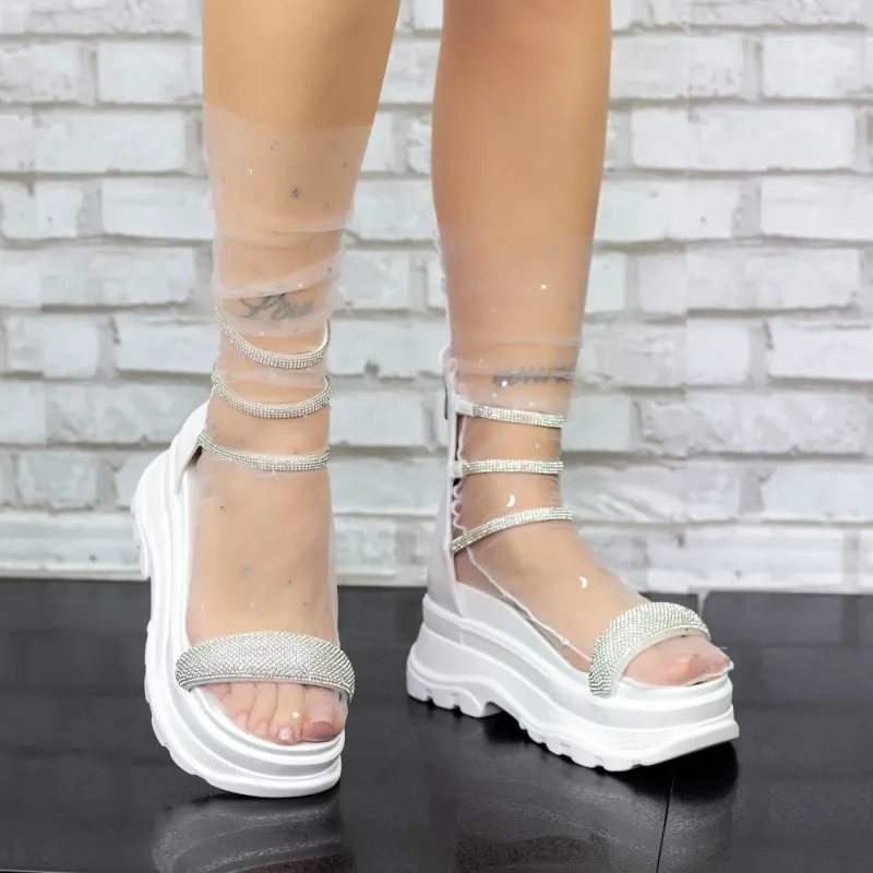 Sandale Dama cu Platforma 2WH5 Alb Mei