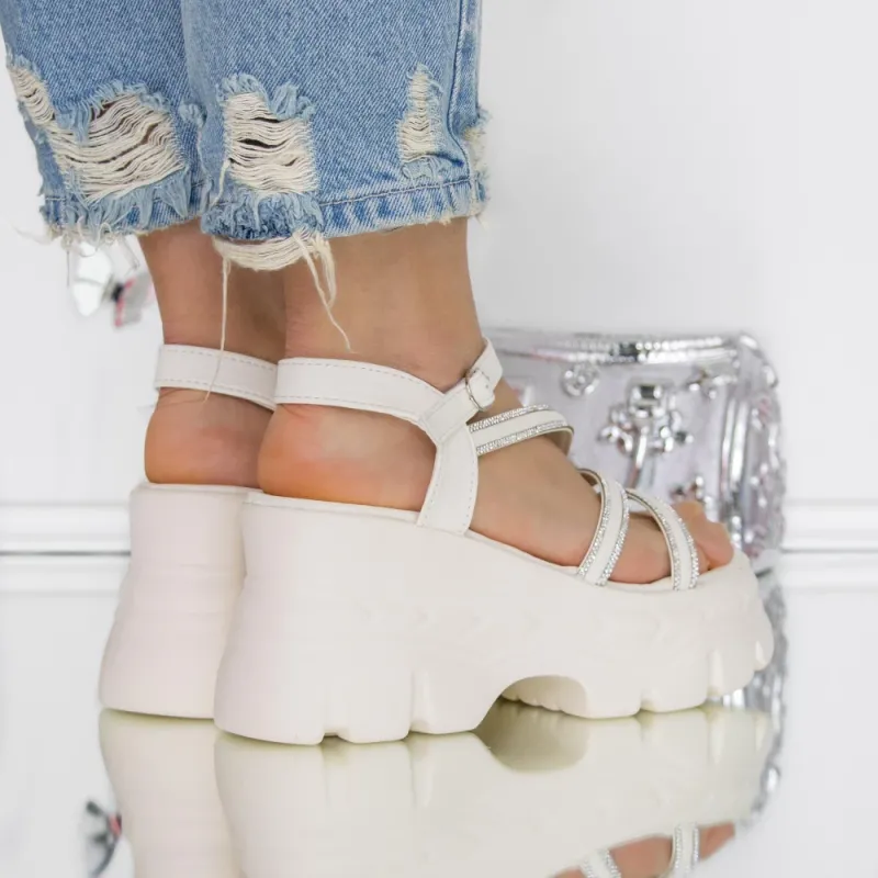 Sandale Dama cu Platforma 3WL209 Alb | Reina