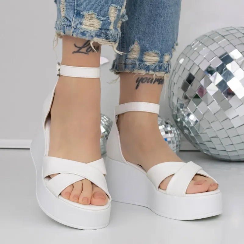 Sandale Dama cu Platforma 3Y12 Alb » Reina.Ro