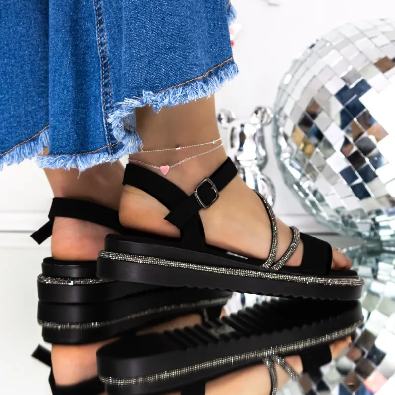Sandale Dama cu Platforma 3GZ67 Negru | Reina