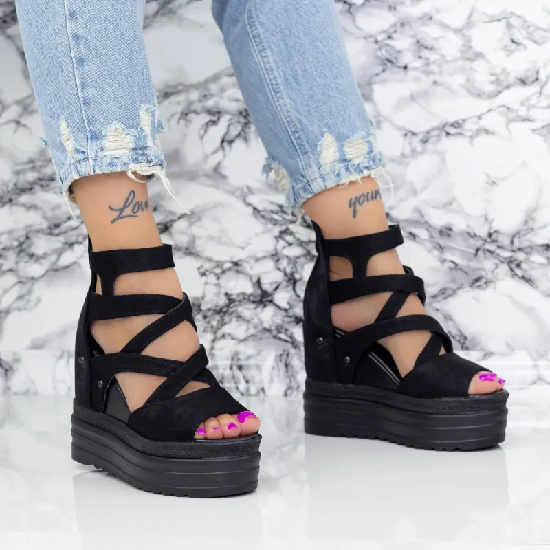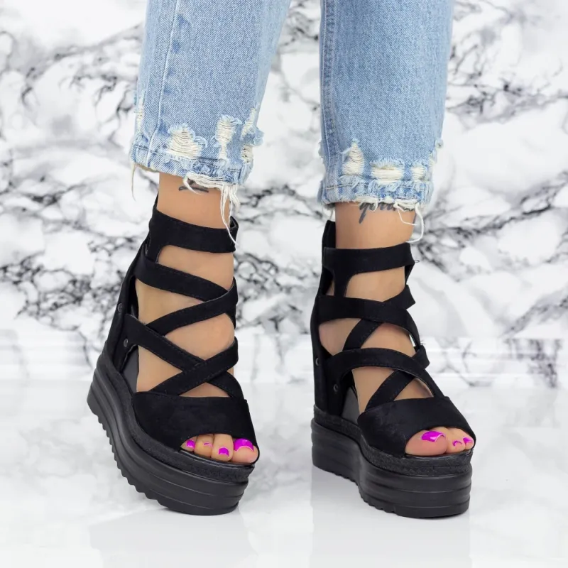 Sandale Dama cu Platforma 2W59 Negru Mei