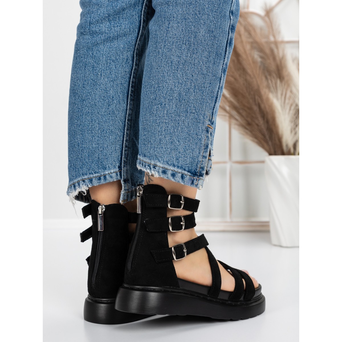 Sandale Dama cu Talpa Joasa 5HXS9 Negru | Mei