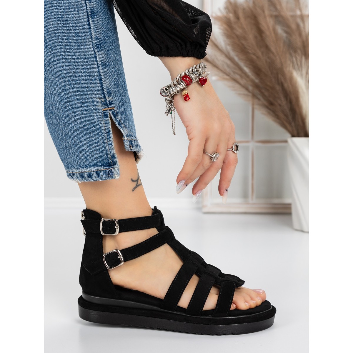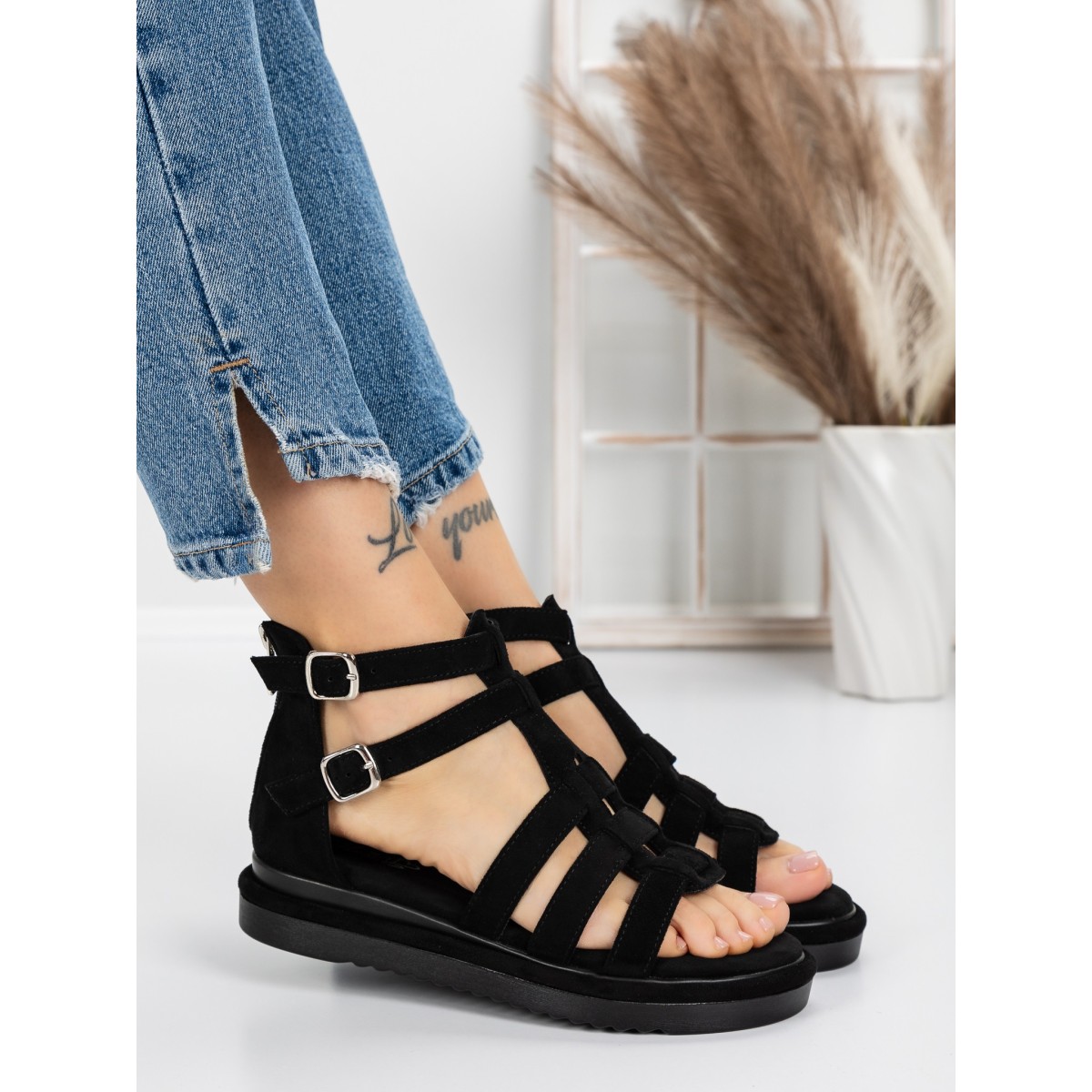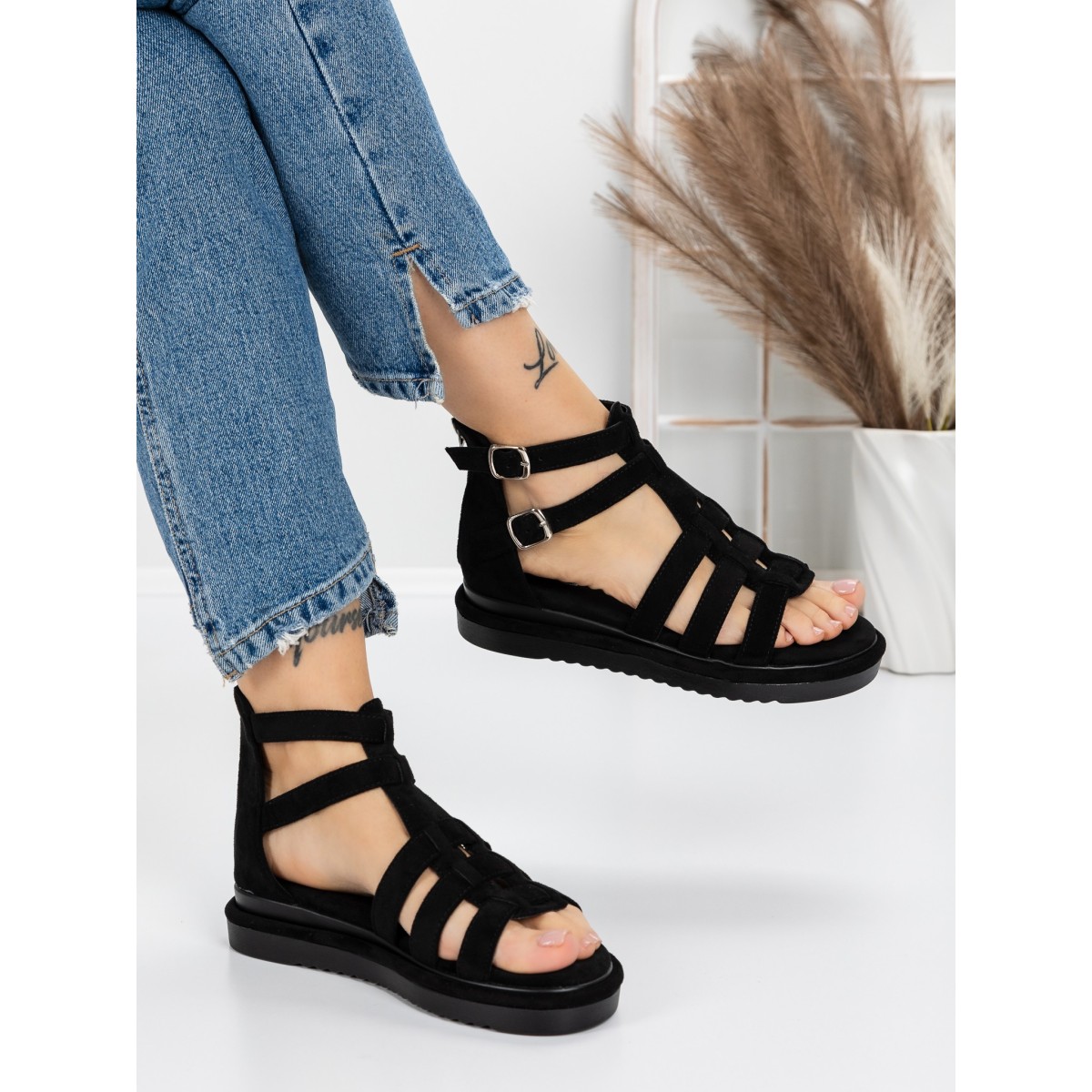 Sandale Dama cu Talpa Joasa 5GZ8 Negru | Mei