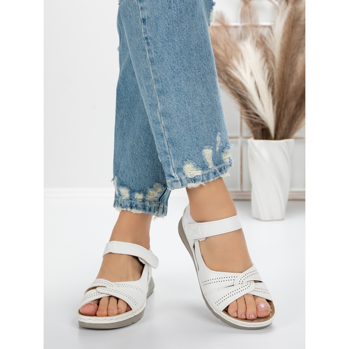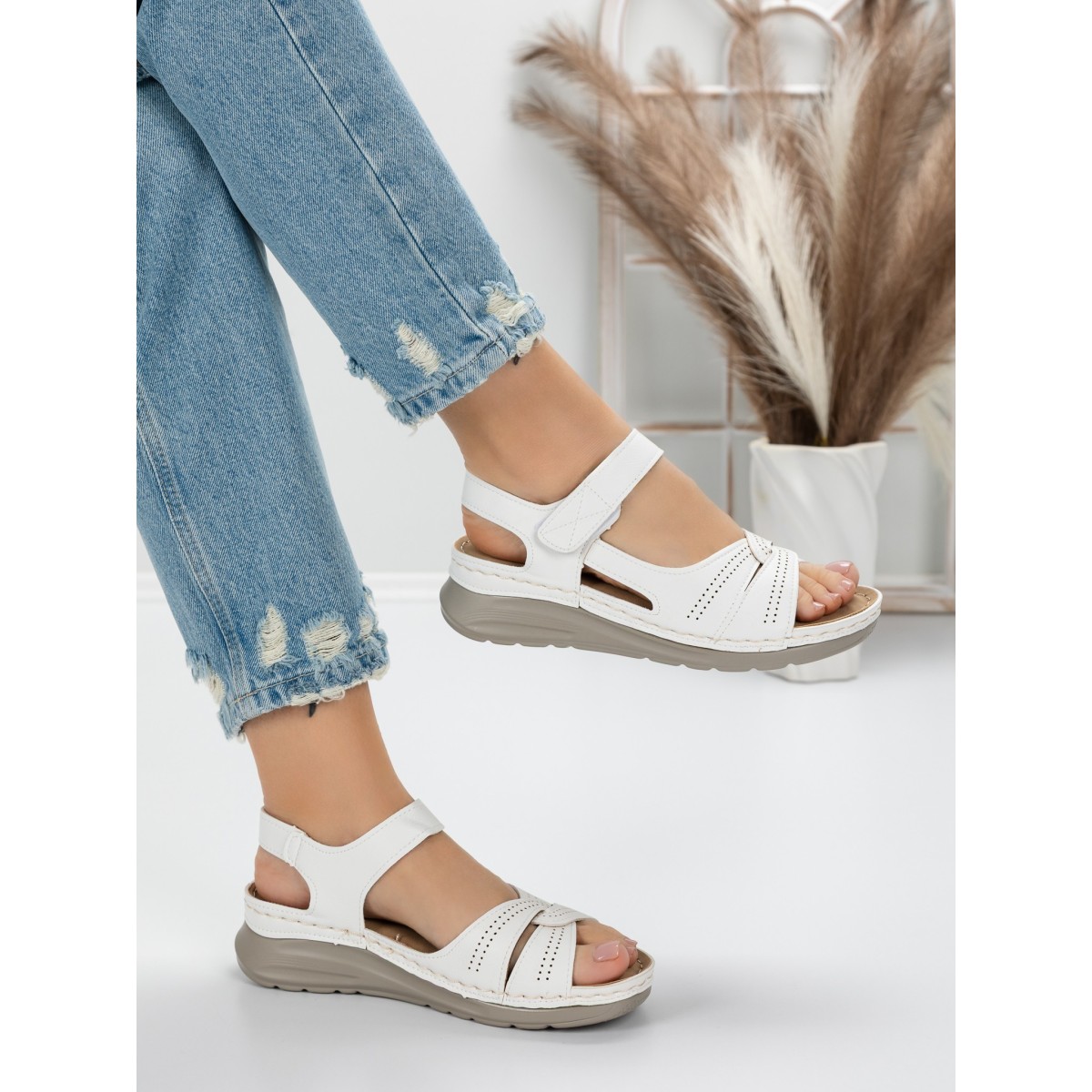 Sandale Dama cu Talpa Joasa 5GZ27 Alb | Mei