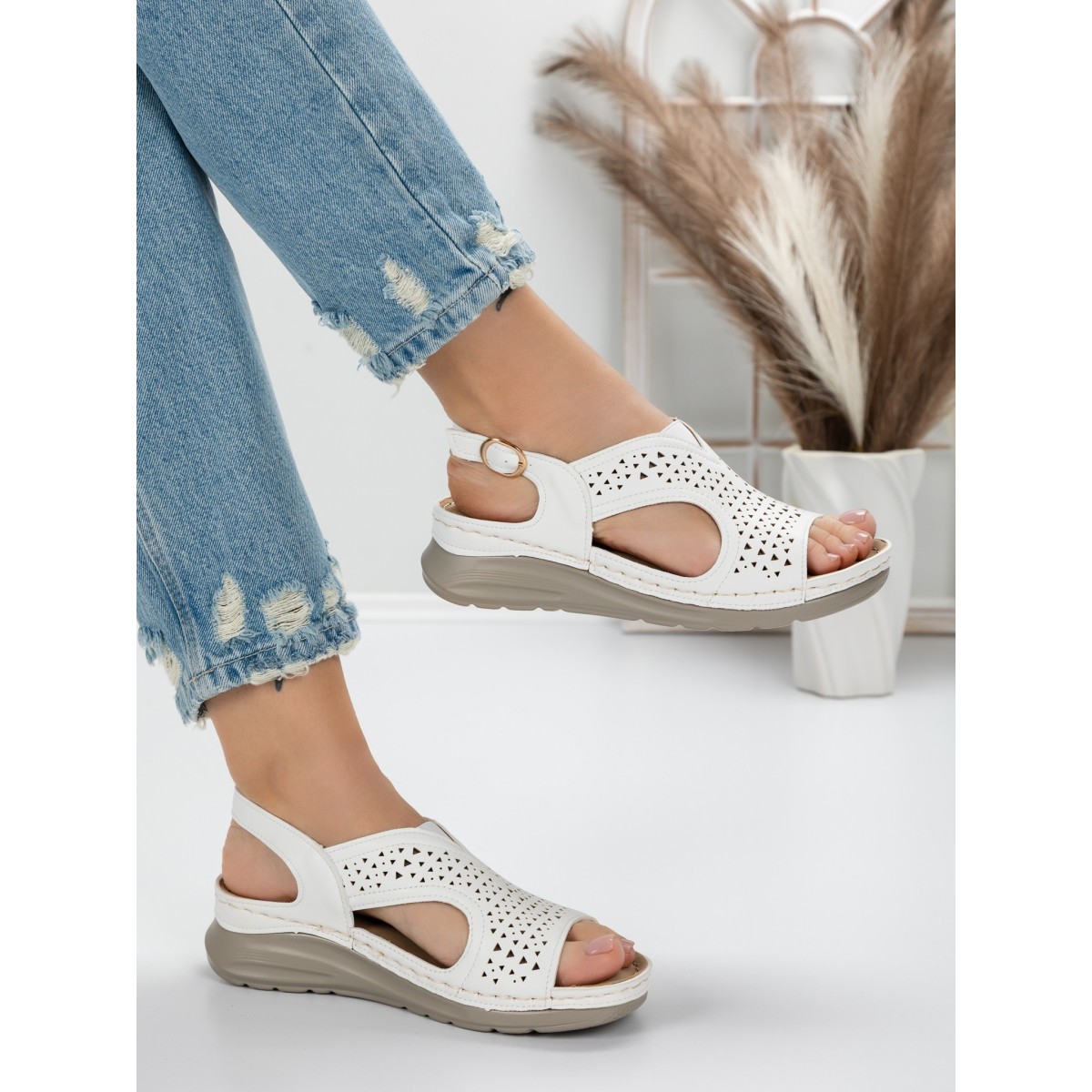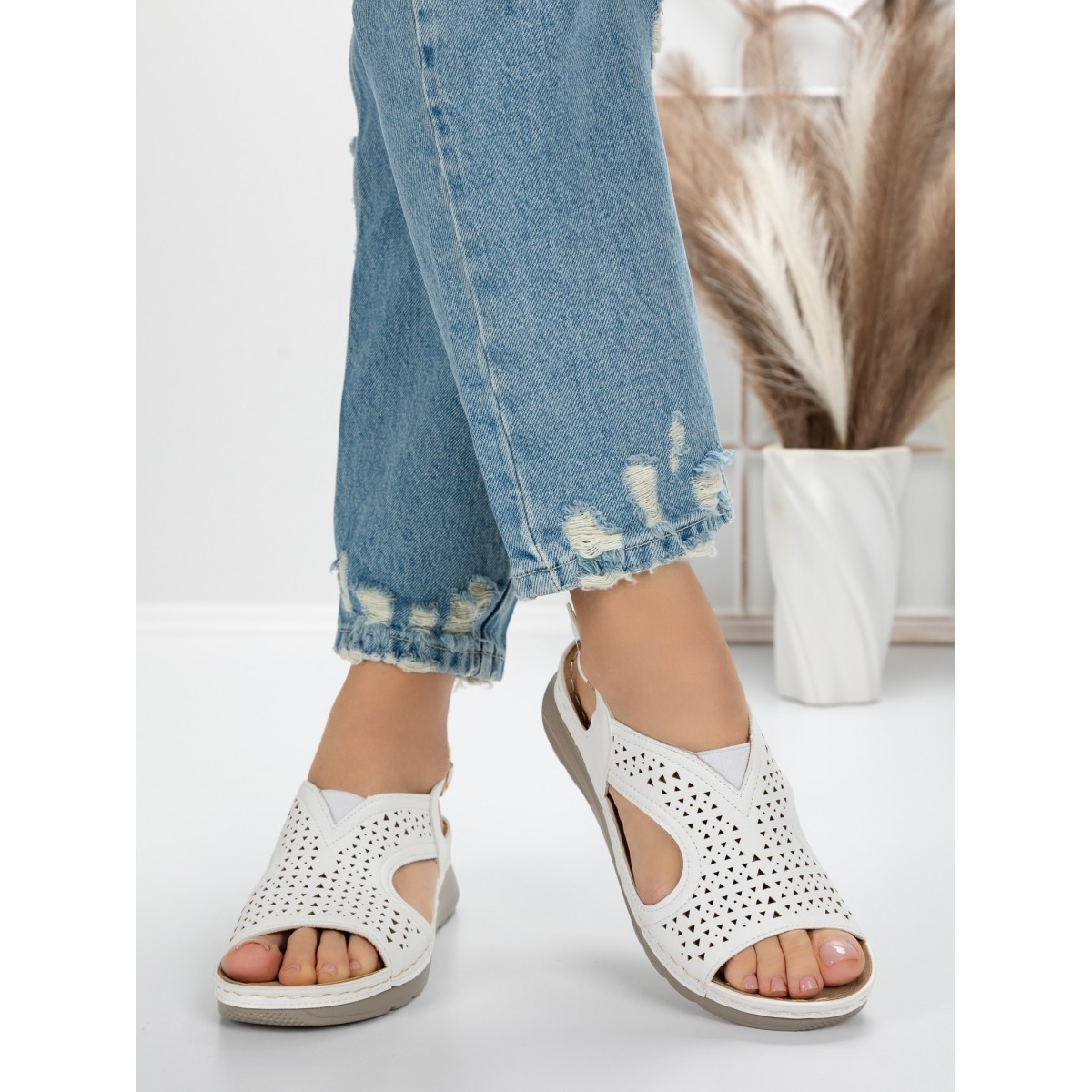 Sandale Dama cu Talpa Joasa 5GZ29 Alb | Mei