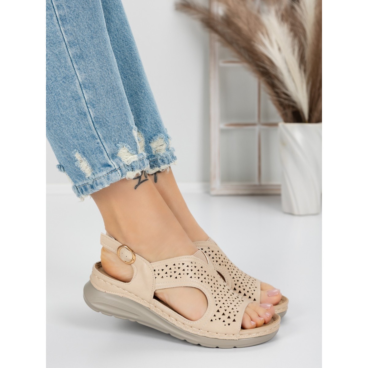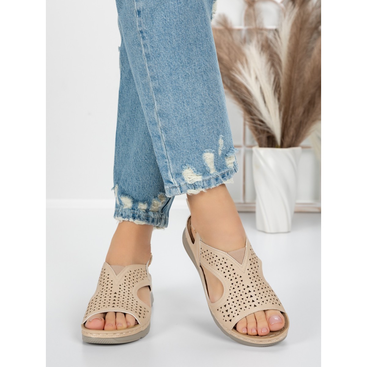 Sandale Dama cu Talpa Joasa 5GZ29 Bej | Mei