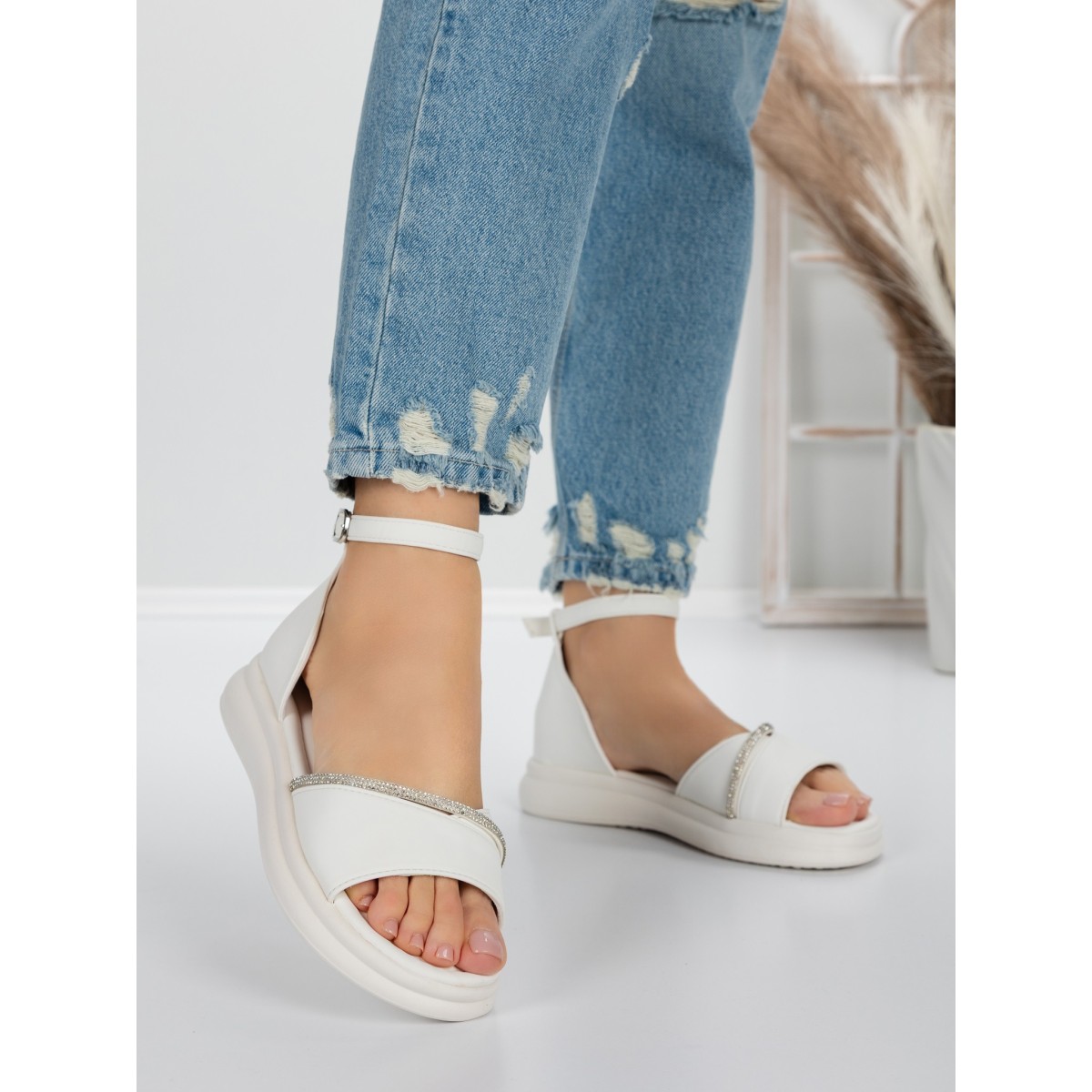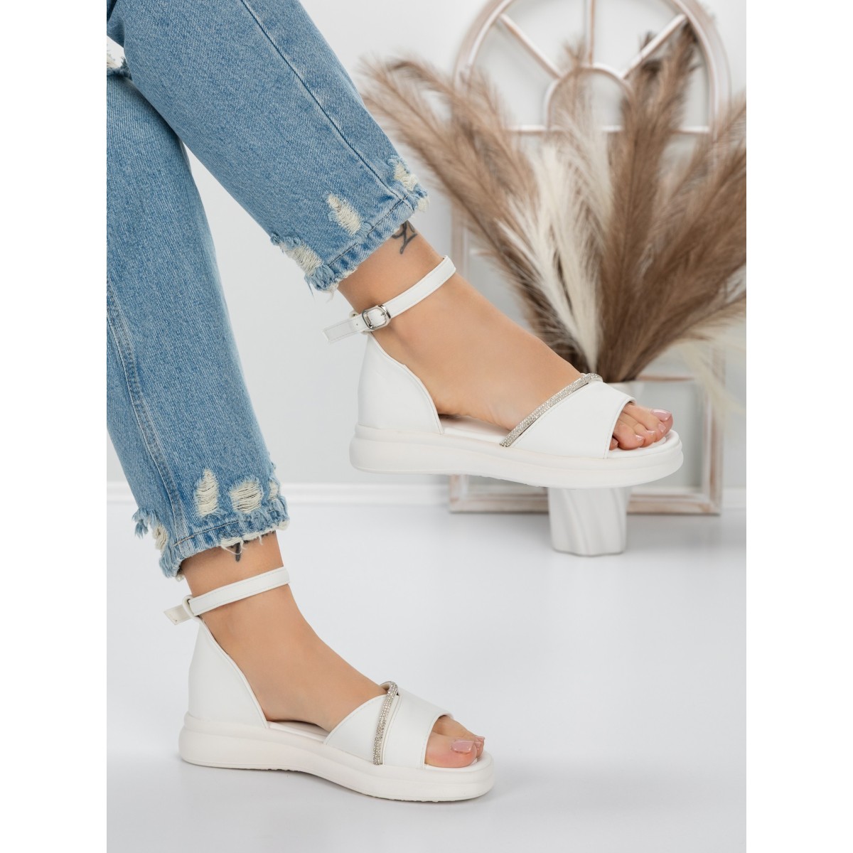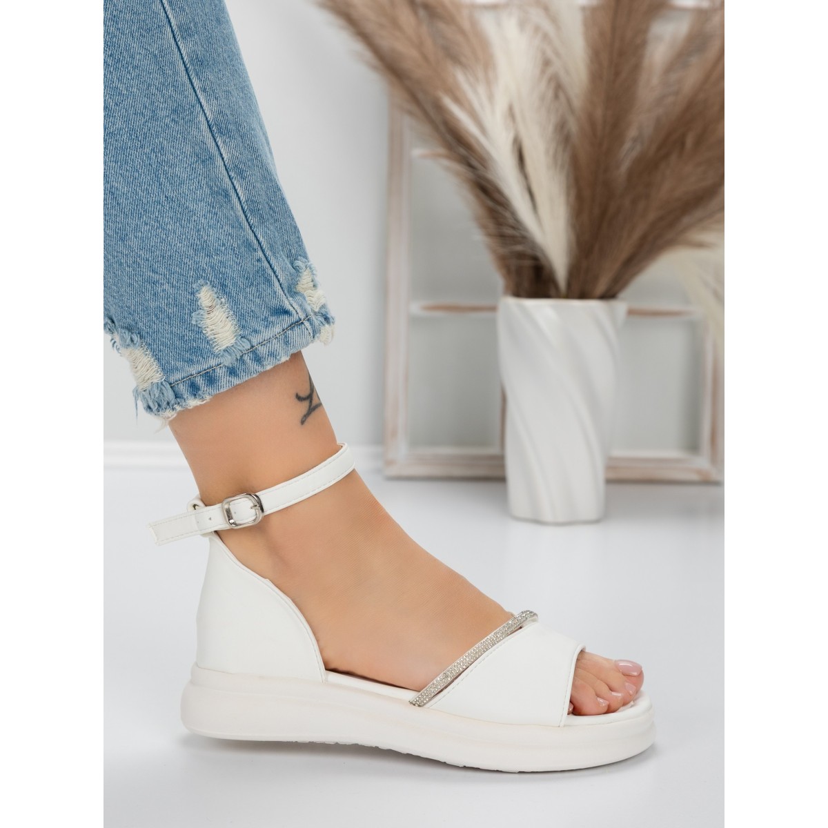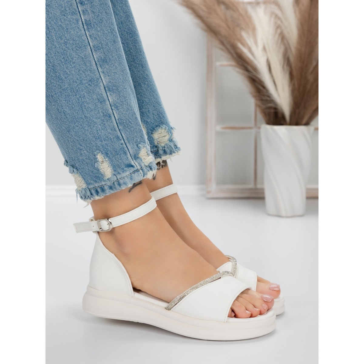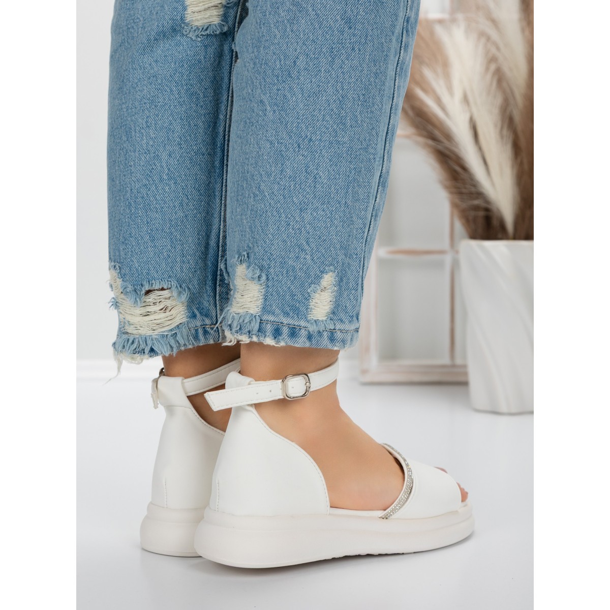 Sandale Dama cu Talpa Joasa 5WL22 Alb | Mei