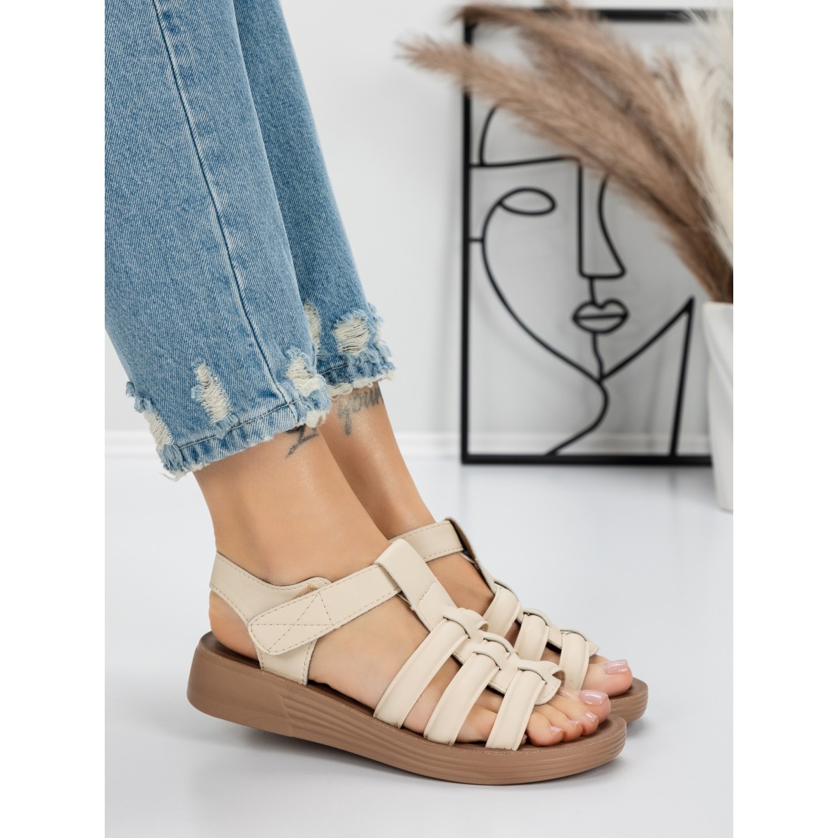 Sandale Dama cu Talpa Joasa 5XJ53 Bej | Mei