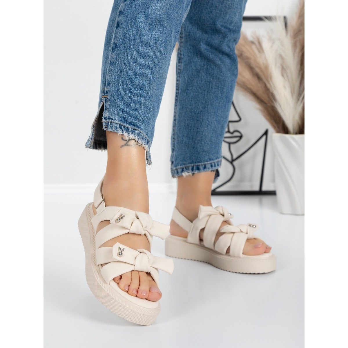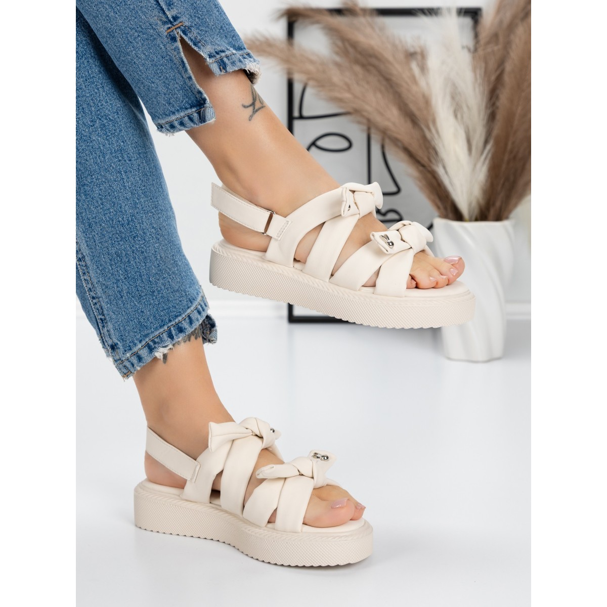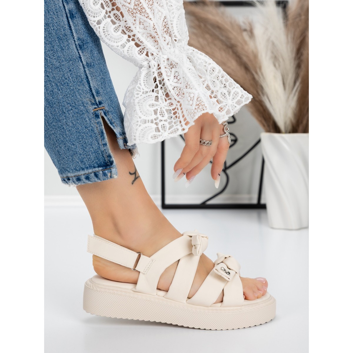 Sandale Dama cu Talpa Joasa 5H29 Bej | Mei