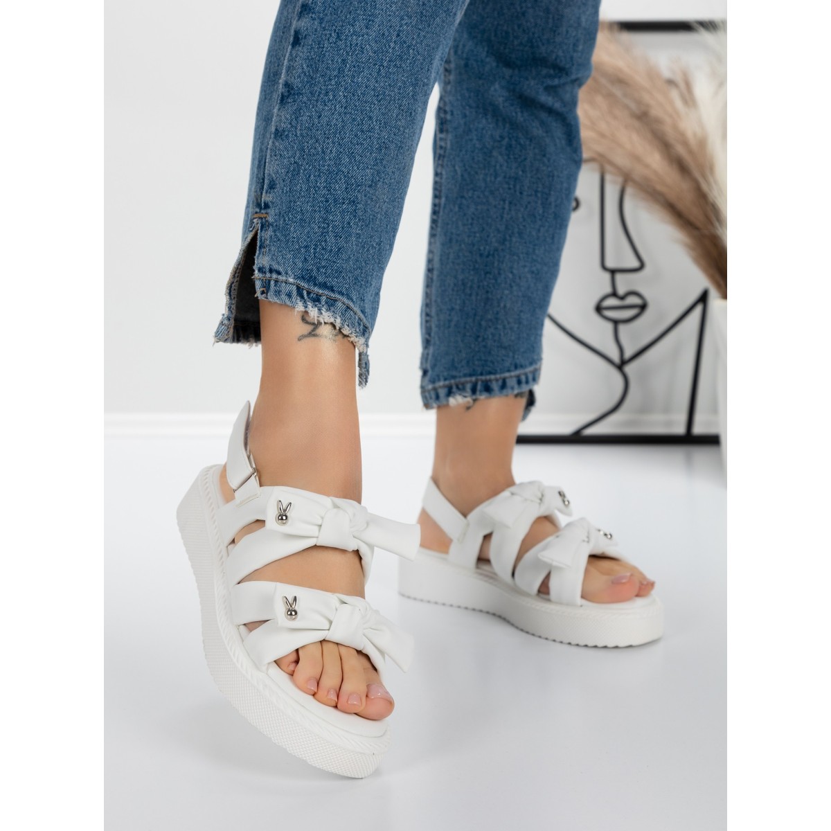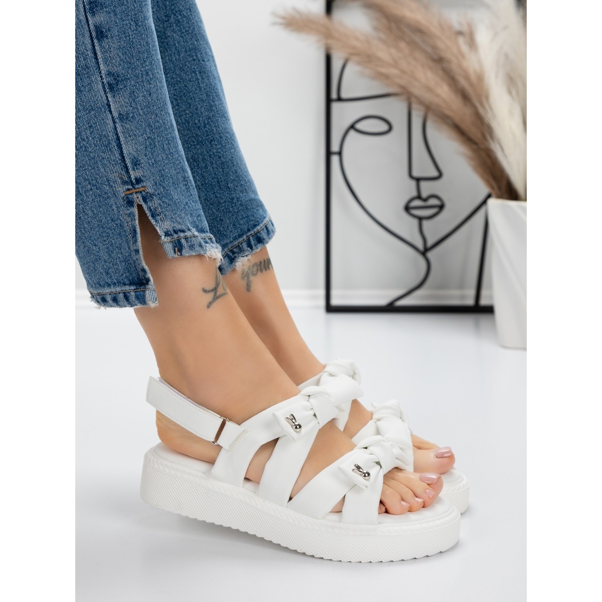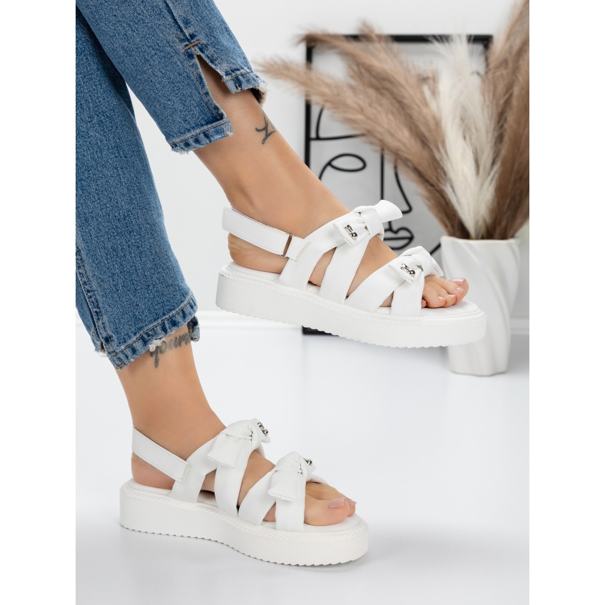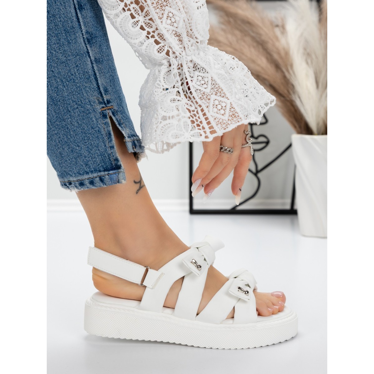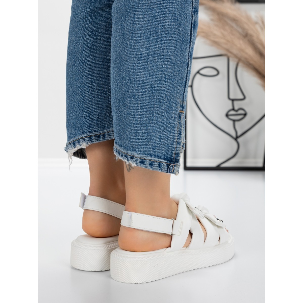 Sandale Dama cu Talpa Joasa 5H29 Alb | Mei