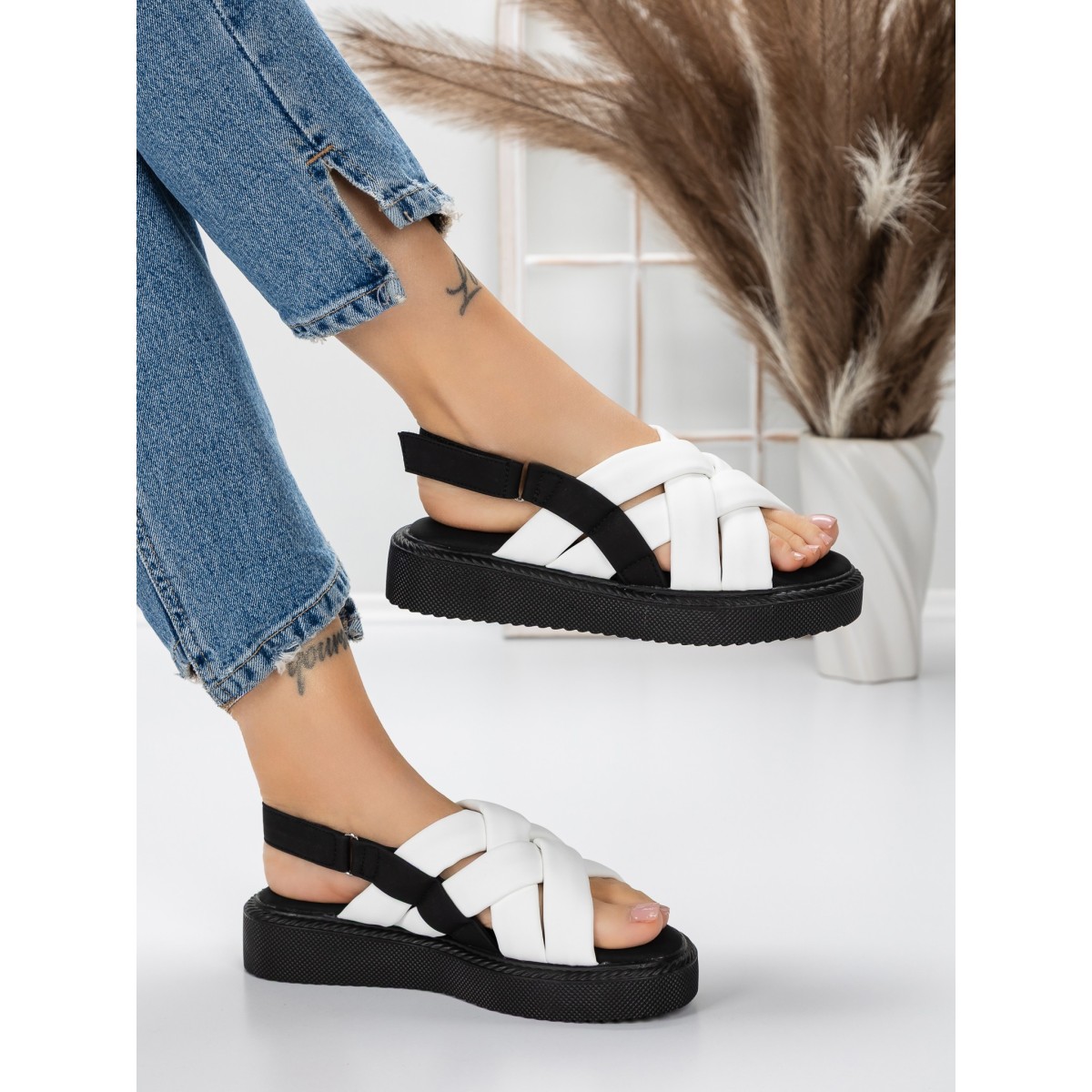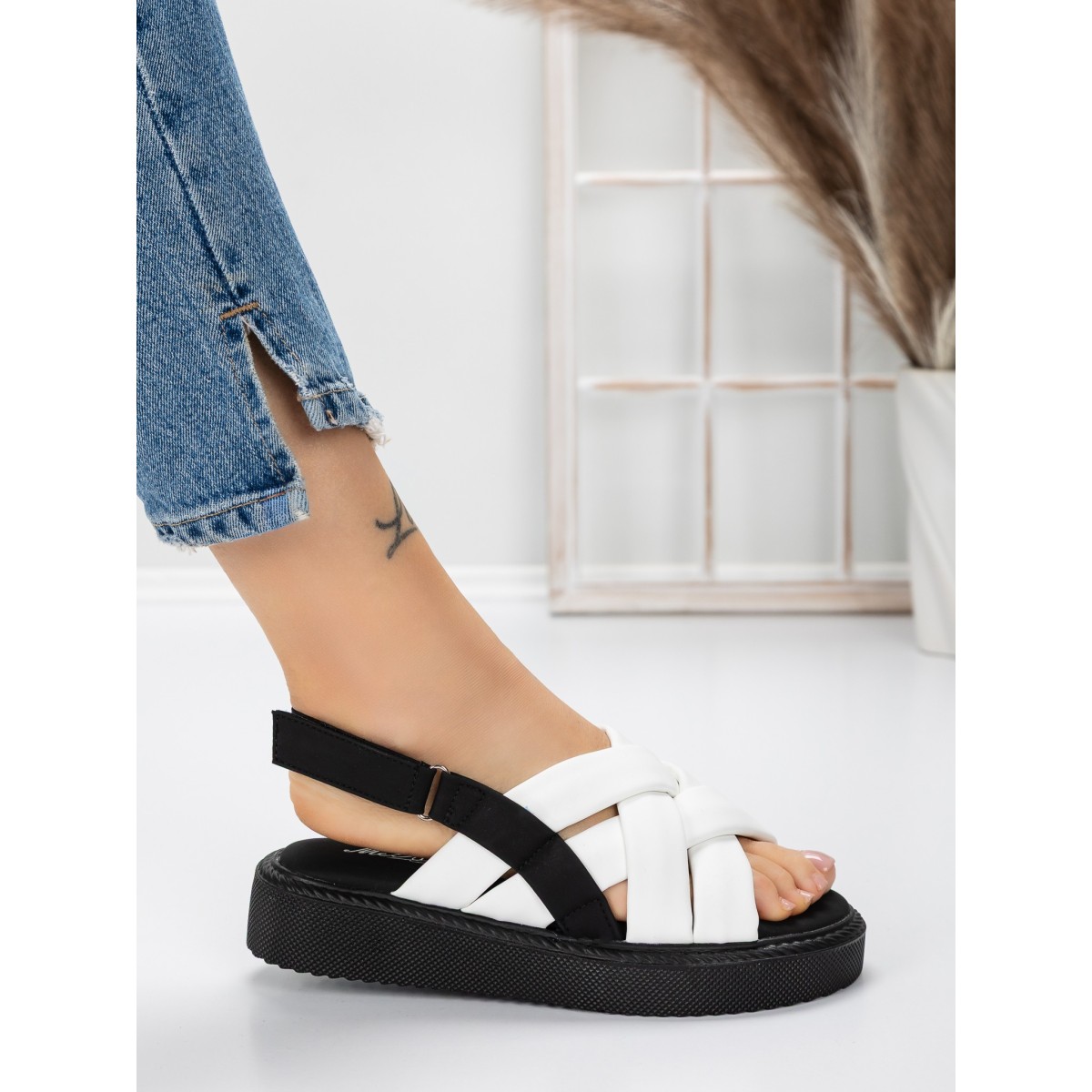 Sandale Dama cu Talpa Joasa 5H17 Alb-Negru | Mei