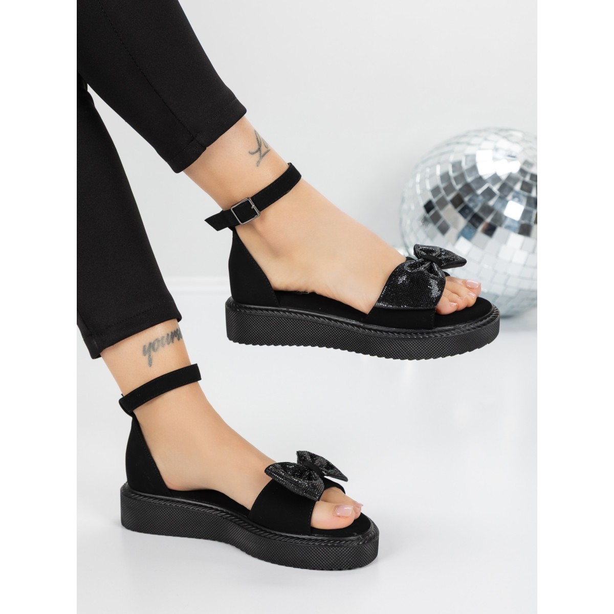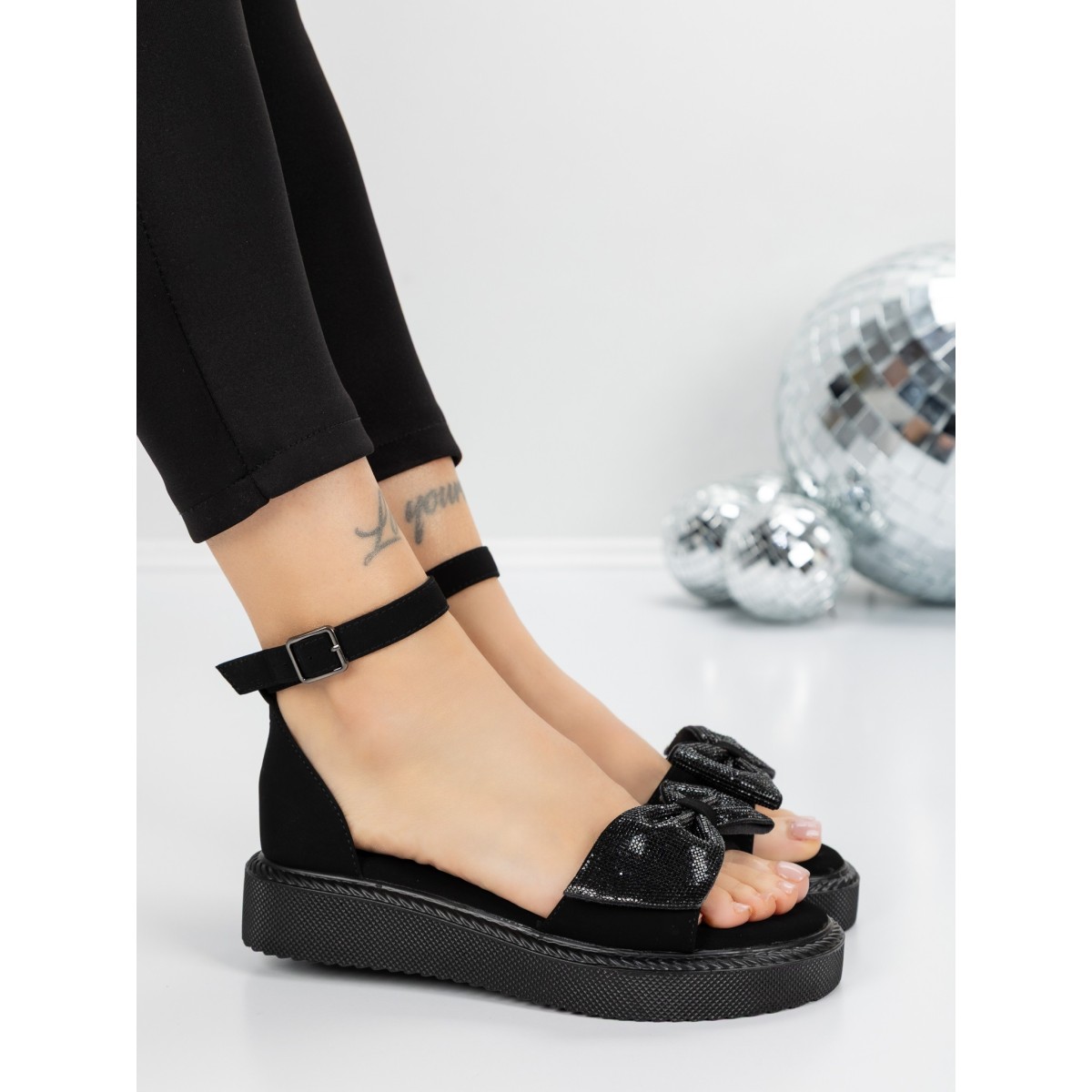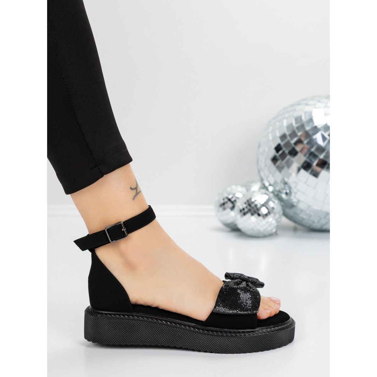 Sandale Dama cu Talpa Joasa 5H22 Negru | Mei